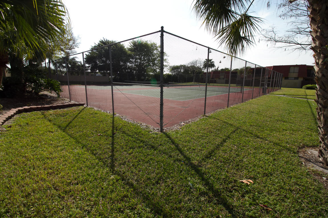 BEAUTIFULLY CARED FOR 2 BEDROOM, 2 1/2 BATH TOWNHOME - OPEN LIVING ROOM FLOWS TO DINING AND KITCHEN AREA - UPDATED KITCHEN FEATURES QUALITY 42'' MAPLE CABINETS, SS APPLIANCES, GRANITE COUNTER TOPS - MASTER AND 2ND BEDROOM HAVE PRIVATE BATHROOMS, WALK IN CLOSETS, SLIDERS OPENING TO BALCONY OVERLOOKING COURTYARD AND BEYOND - MASTER BATH HAS DUAL VANITIES, SPA TUB AND SHOWER - HUGE PAVERED COURTYARD IS COMPLETELY FENCED IN, PERFECT FOR PETS - AMENITIES INCLUDE: PULL OUT SHELVES IN MANY KITCHEN CABINETS, WIDE COUNTER HAS DOUBLE SIDED CABINETS - NEWER LIGHTING IN KITCHEN - ACCCORDIAN HURRICANE SHUTTERS FOR ALL SLIDERS - HURRICANE CODED STORAGE SHED - LOW HOA FEES - WALK TO POOL, TENNIS - ALL ''A'' RATED SCHOOLS - CONVENIENT TO SHOPPING, RESTAURANTS AND ALL MAJOR HIGHWAYS