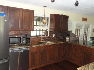 COUNTRY ESCAPE! UNIQUE 4 BEDROOM WITH TWO MASTER SUITES, 3 FULL BATHS, OVER SIZED 34 X 24 GARAGE AND A SCREENED IN POOL. THE KITCHEN OFFERS GRANITE COUNTER TOPS, STAINLESS APPLIANCES, CHERRY CABINETS, BREAKFAST BAR, AND A BUILT IN WINE COOLER. LARGE FAMILY RM WITH VAULTED CEILINGS. UPGRADED BATHS WITH CUSTOM GRANITE AND TILE. ADDITIONAL FEATURES INCLUDE 5 SETS OF FRENCH DOORS, SECURITY SYST., WOOD AND TILE FLOORING AND HIGH HAT LIGHTING. RELAX ON THE FRONT PORCH OR THE HUGE BACK PATIO. TAKE A DIP IN YOUR POOL. ALL THIS AND MUCH MORE ON A 1.25 ACRE FENCED BACK YARD WITH FRUIT TREES. AVOCADO, SAPODILLA AND STARFRUIT. MUST SEE TO APPRECIATE!LOTS OF ROOM FOR PETS AND FAMILY.