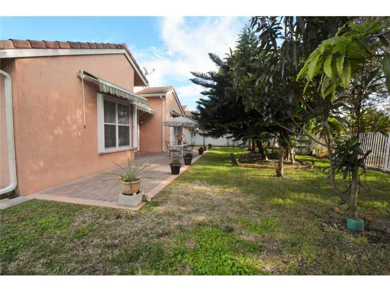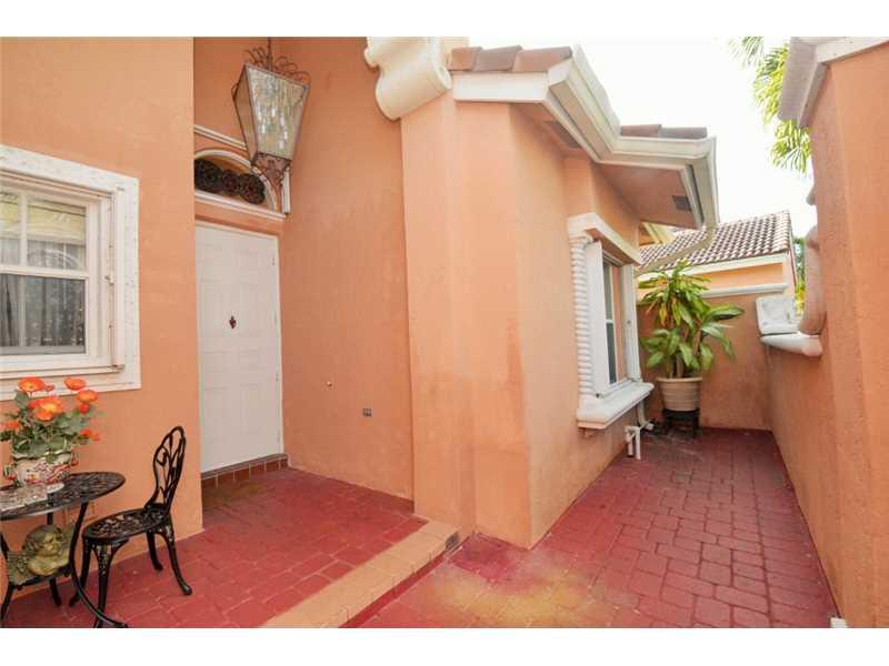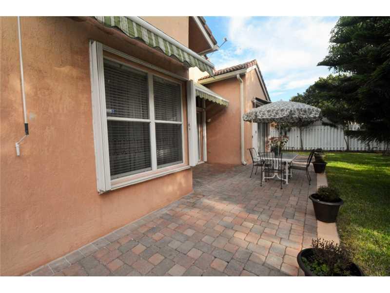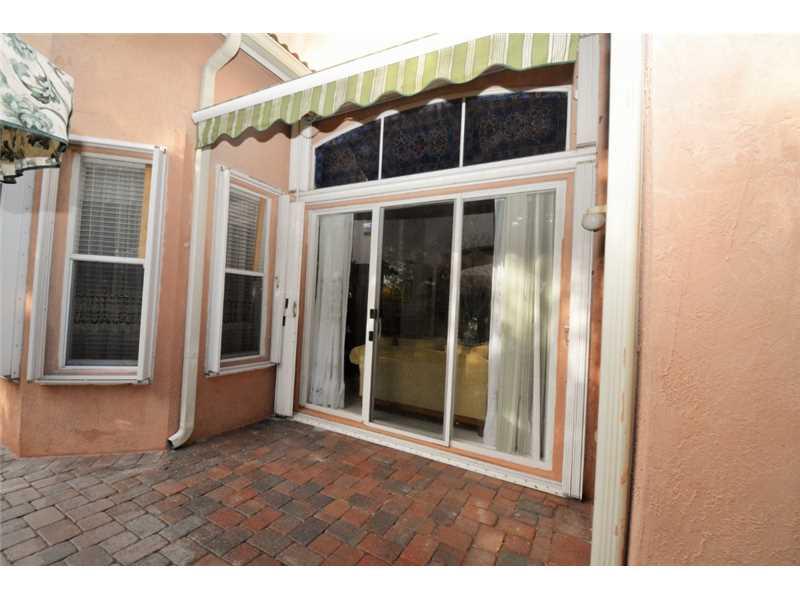 GORGEOUS HOME W/COMPLETE PRIVACY IN THE FENCED IN BACKYARD. OVERSIZED PATIO RUNS THE LENGTH OF HOUSE, W/COVERED SITTING AREA. 3 RETRACTABLE AWNINGS CREATE ADD'L SHADE. EXTENDED FAMILY ROOM GIVES EXTRA LIVING SPACE. STUNNING PORCELAIN FLOORS THROUGHOUT. K ITCHEN HAS ALL S/S&UPGRADED FURNITURE QUALITY CABINETS&LARGE EAT AT CENTER ISLAND. MASTER BATH UPGRADED W/MARBLE FLOORS, SHOWER&COUNTERTOPS. FRONT OF HOME FEATURES A LOVELY COURTYARD AREA W/SITTING AREA. HOME SECURED BY SECURITY SYSTEM&ACCORDION SHUTTERS.
