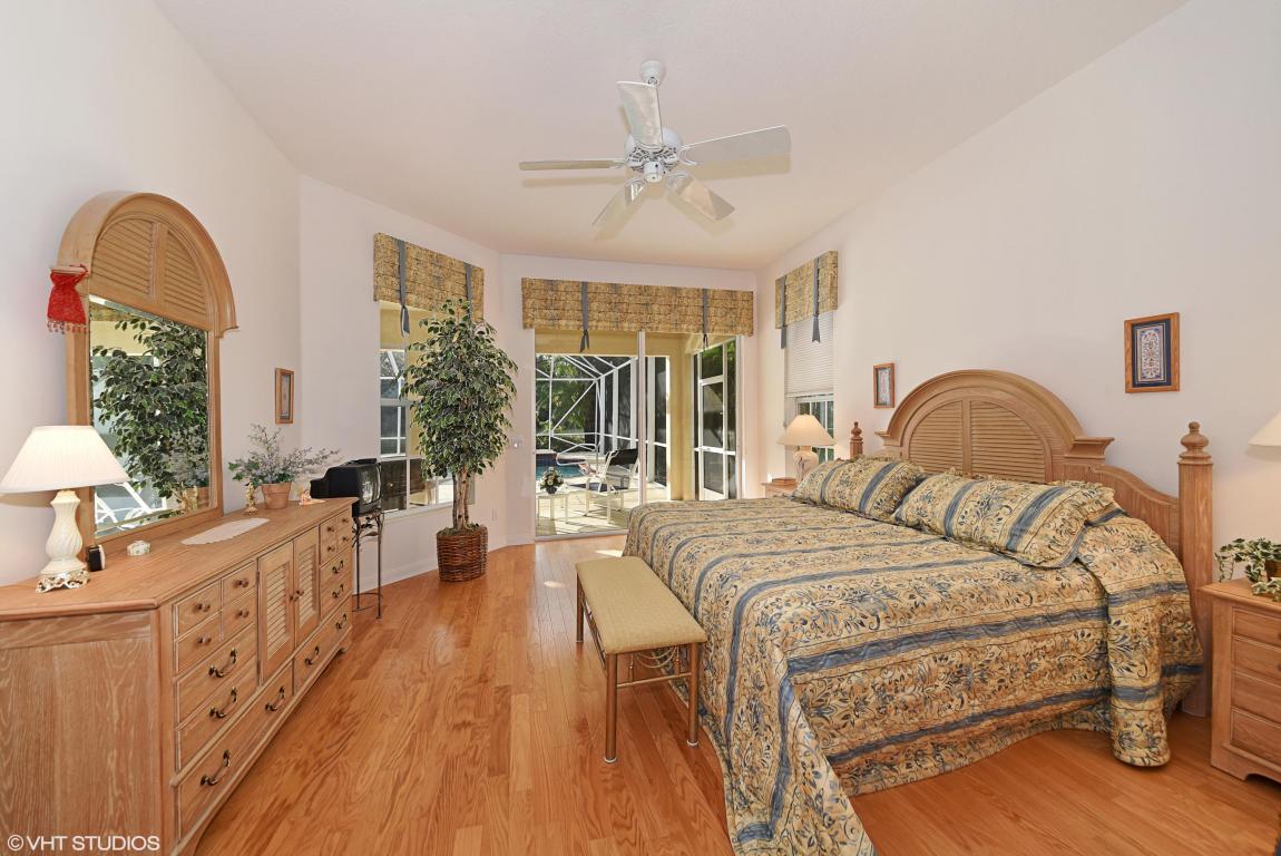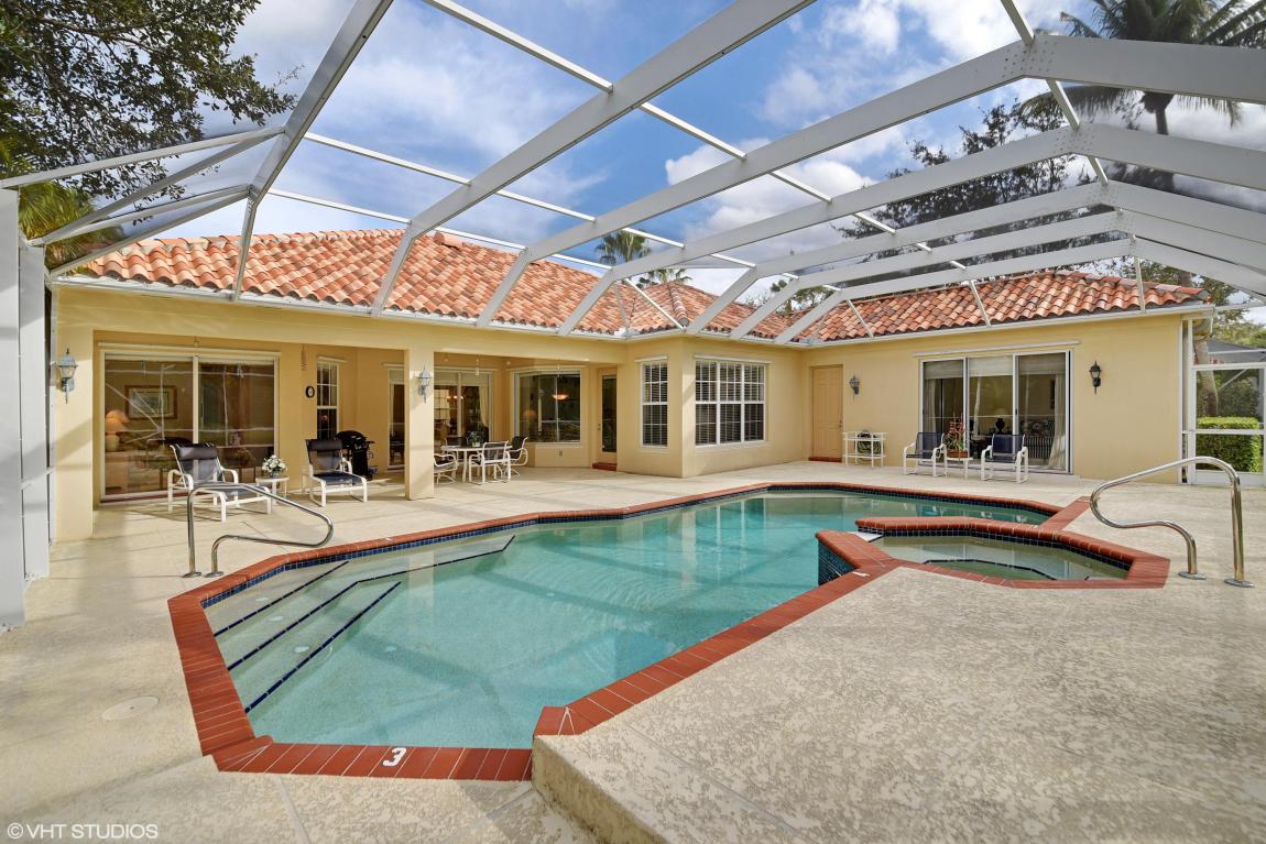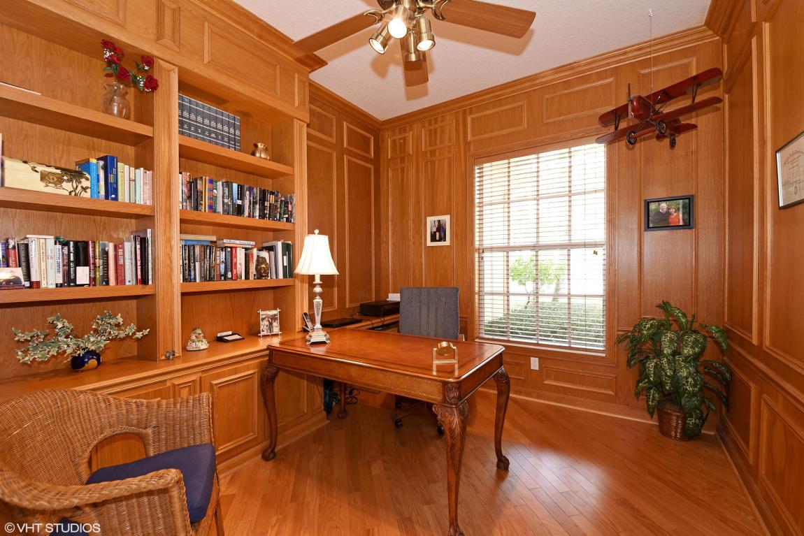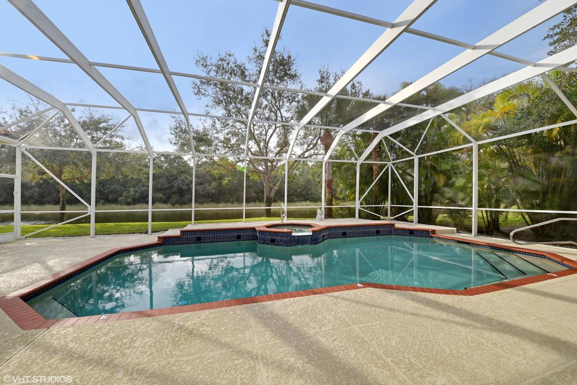 Located in the sought-after Breakers Pointe neighborhood in Breakers West AND one of just a few homes to include a BREAKERS WEST TENNIS/SOCIAL MEMBERSHIP! Popular lakefront home has 4 BR + Office/Library, 3 BA and lovely screened patio with 15'x30' pool & raised spa. Crisp, white kitchen w/center island and pantry closet opens to spacious Breakfast Area and Family Room. 3 comfortably appointed guest bedrooms have custom fitted closets. Located near the Master Bedroom is a handsome wood paneled Office/Library with built-in bookcases and wood floors. Master Suite also has wood floors, His and Her walk-in closets and His and Her Master Baths. Enjoy wonderful privacy and sunsets while overlooking the lake. Additional features include tile floors, hurricane protection & central vacuum.