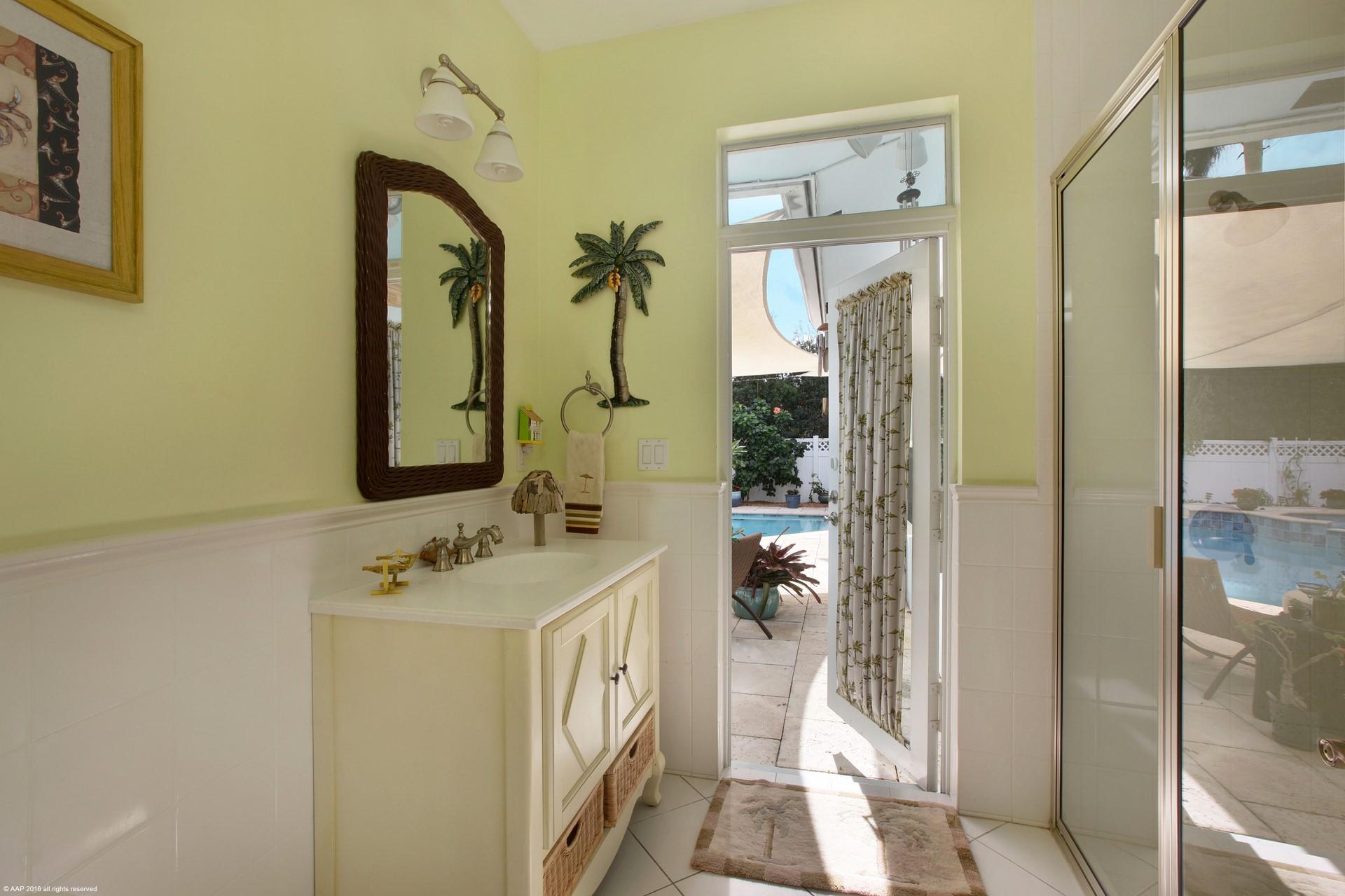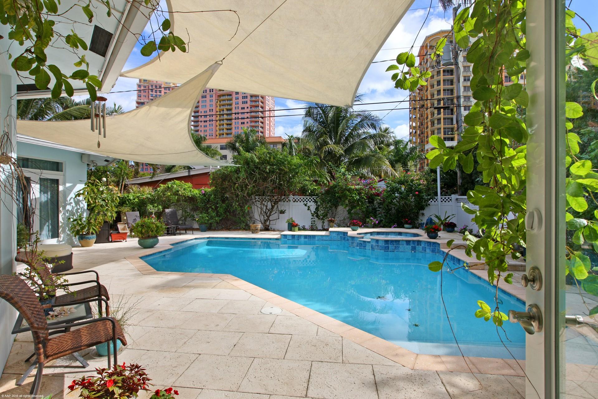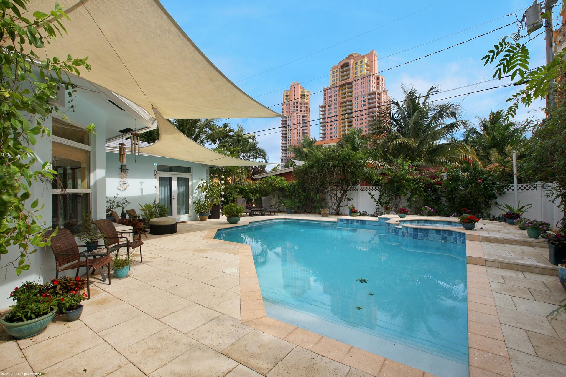 STEPS FROM THE BEACH! This immaculate four bedroom, four bath contemporary Key West style home is situated just steps away from beautiful Ft Lauderdale beach. The open and airy floor plan features 20 foot high Cyprus wood beam ceilings and beautifully renovated kitchen and baths with polished Havana Blue terrazzo floors throughout the main living areas. The top of the line kitchen has stainless steel Jenn-Air and Kitchen Aid appliances, granite countertops and solid birchwood, shaker style cabinets. The custom free floating birch and oak staircase with stainless steel railing and balustrade is like a work of art in the center of the home. French doors open to a keystone patio and a tropically landscaped garden surrounding an extra large salt pool with waterfall spa. Other features of the