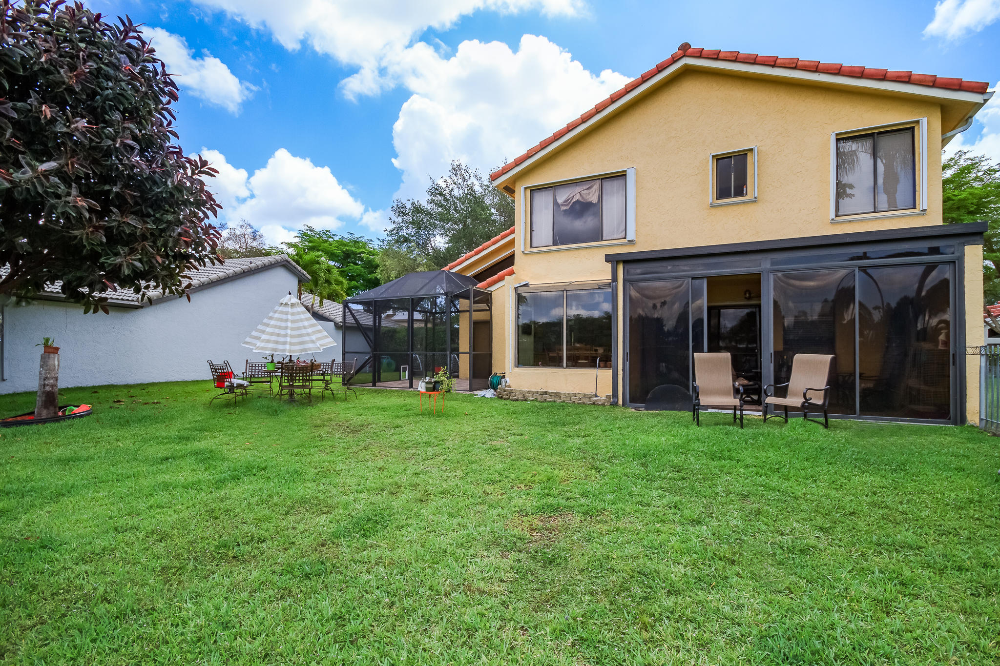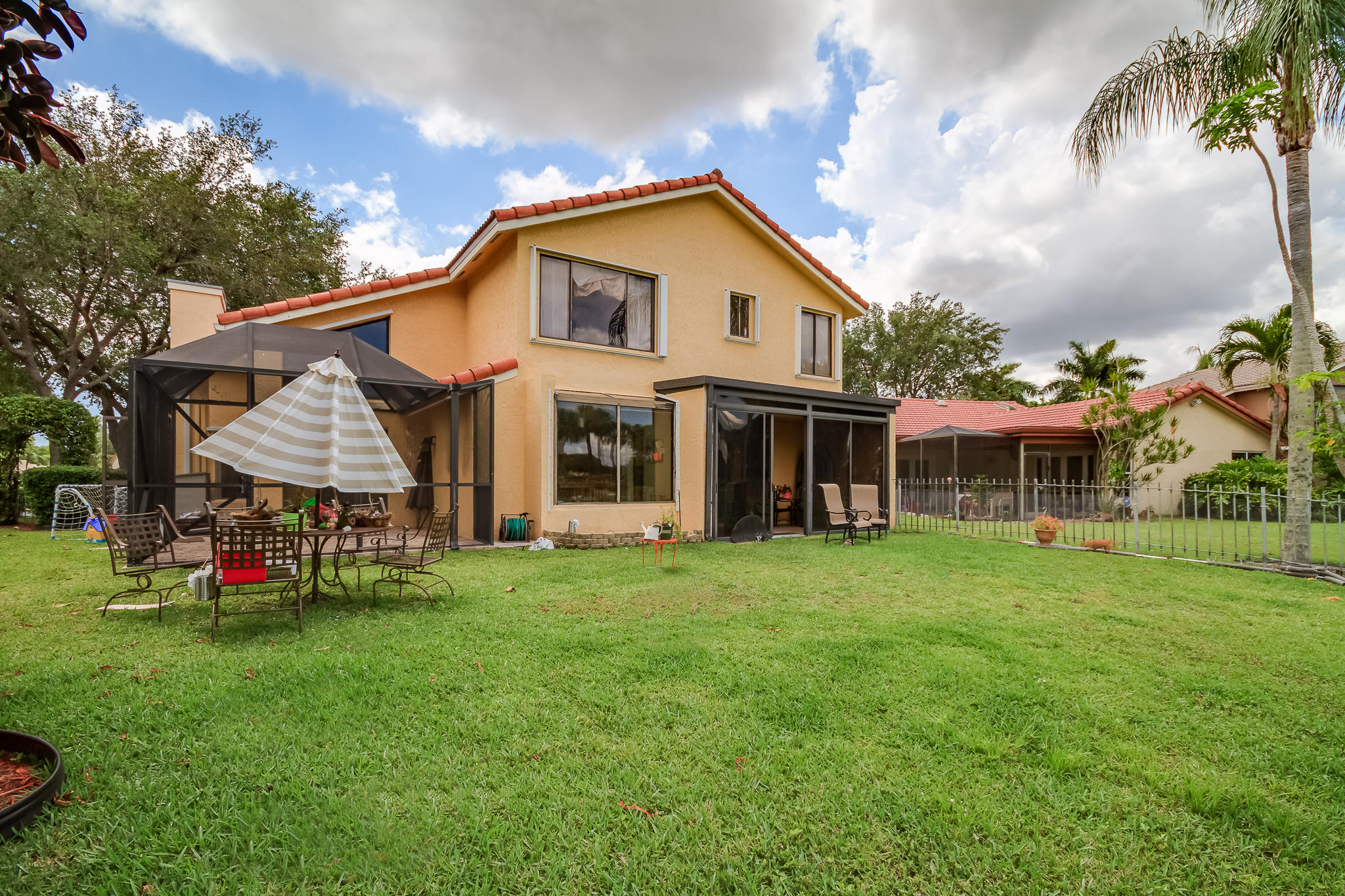 This 4 bedroom, 3 bathroom waterfront home in Laguna at Mission Bay cannot be missed! It features ceramic tiles in the living areas and hardwood floors upstairs. The large windows and tall vaulted ceilings bring tons of light and space into the home and the spacious kitchen features stainless steel appliances, recessed lighting and breakfast nook overlooking the lake. Second floor also features a walk out balcony accessible via french doors from 2 of the bedrooms. The master bedroom overlooks the lake and fenced yard and has updated en-suite bathroom. This home is also walking distance to the clubhouse and elementary school. Mission Bay amenities include tennis club, pool, game room, gym, and more. It is also central to major roads, great restaurants and all the best Boca has to offer!