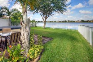 Rare find in the amenity- filled community of Liberty Isles. Situated on a very large lake where the homes across are at a distance and featuring a fountain in the middle, it's that million dollar view for under $300K. This meticulously maintained three bedroom, two and a half bath home is open and spacious. Upgrades include, stainless appliances, AC Unit, brand new laminate flooring upstairs, 18'' tile flooring, tray ceiling, extended pavered patio with spa. Room for a pool. Live the Florida life with a fitness center, lap pool, lit tennis courts and even a kiddie playground. Pull up in your convertible to your new home! Low HOA, pet friendly, good rental policy.