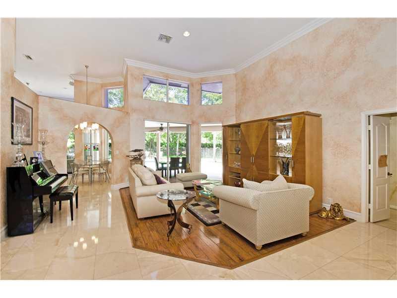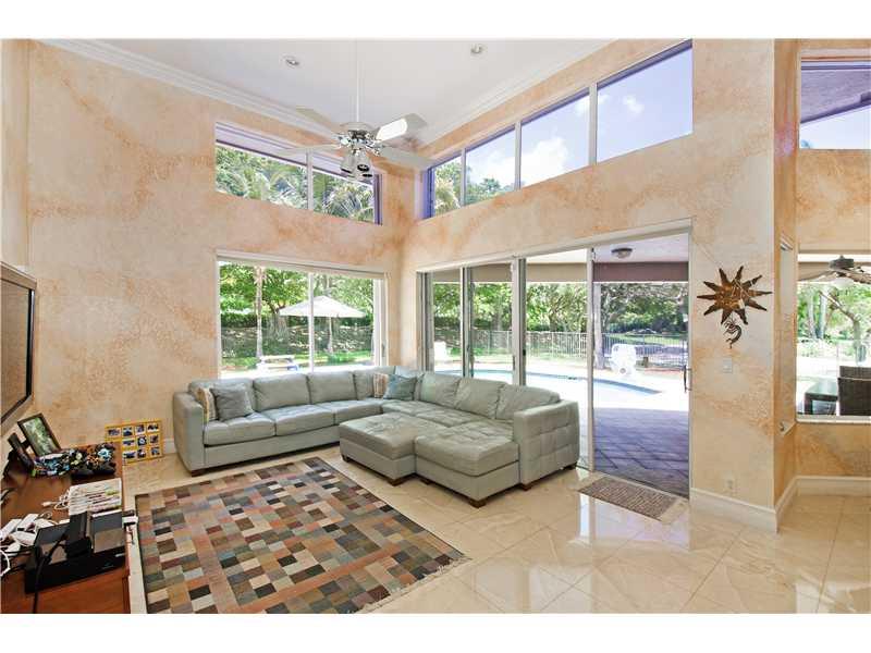 Ideal 5/3 pool home,triple-split floorplan,15,453 SF fully fenced end cul-de-sac lot.Open & bright w/high ceilings & lovely views to outdoors thru-out.Ample open Kitchen w/beautiful wood cabinets & glass detailing,granite counters & SS appliances.Marble & wood floors,crown molding, generously sized bdrms,all UPGR baths,great closets thru-out,separate Laundry Rm,accordion shutters & some impact glass,plus a 2006 roof.Outdoors has a large Patio/Pool area, tons of green space & some water views. A must see!