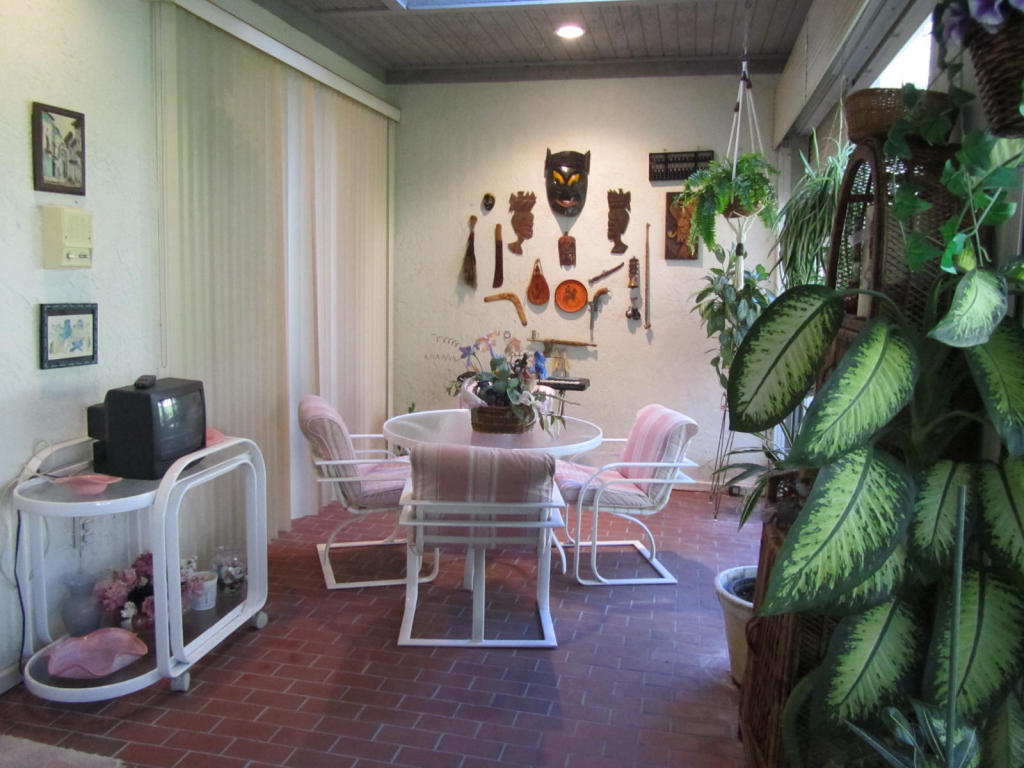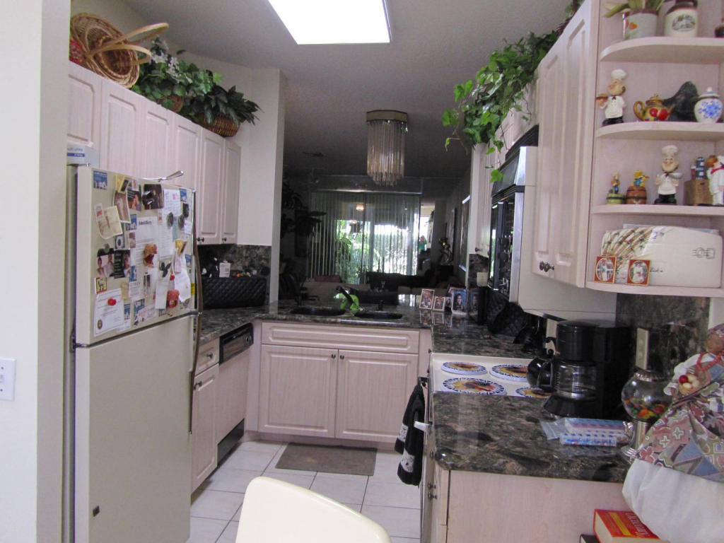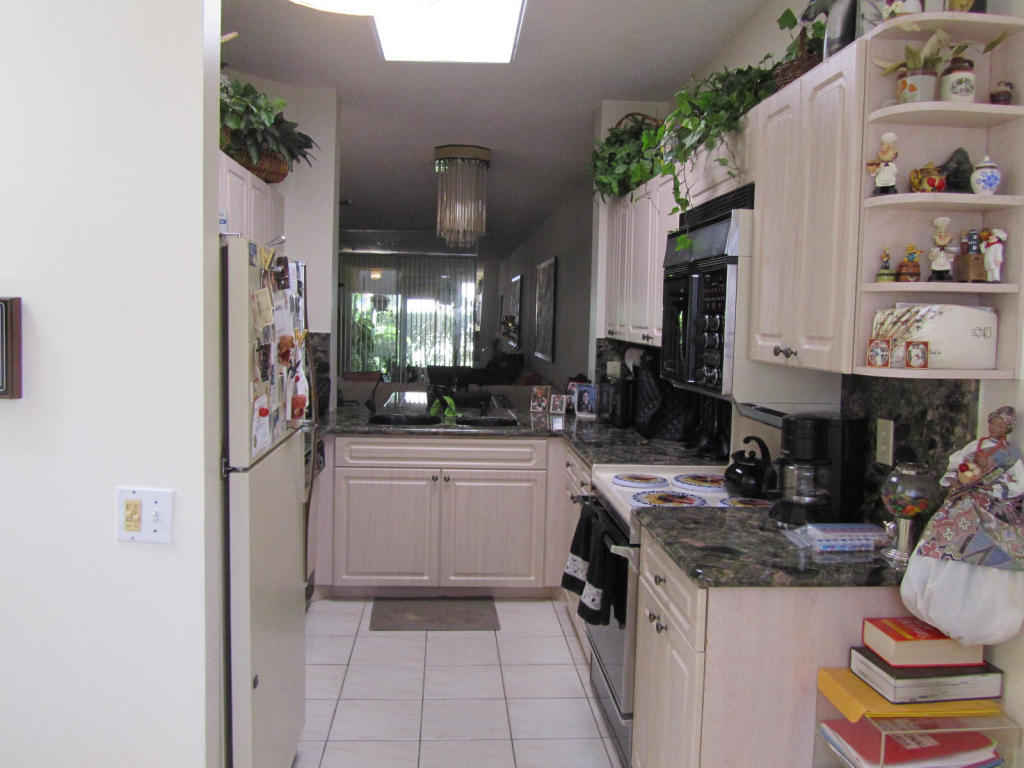 2 bedrooms, 2 1/2 baths, 2 story unit. This open kitchen has garden view and has been redone with granite counters and refaced cabinets. Large living/dining area, great for entertaining. TV area with Murphy bed adjacent to living room, for third bedroom. Neutral tones throughout. Large glass enclosed Florida room, complete with skylight and recessed lighting. A/C approximately 8 years old.