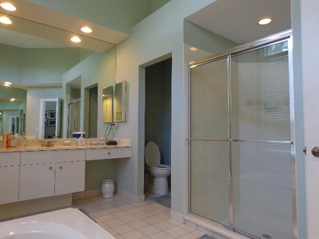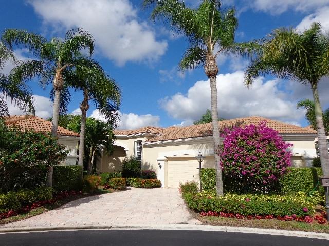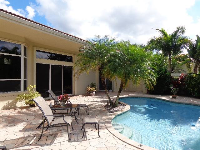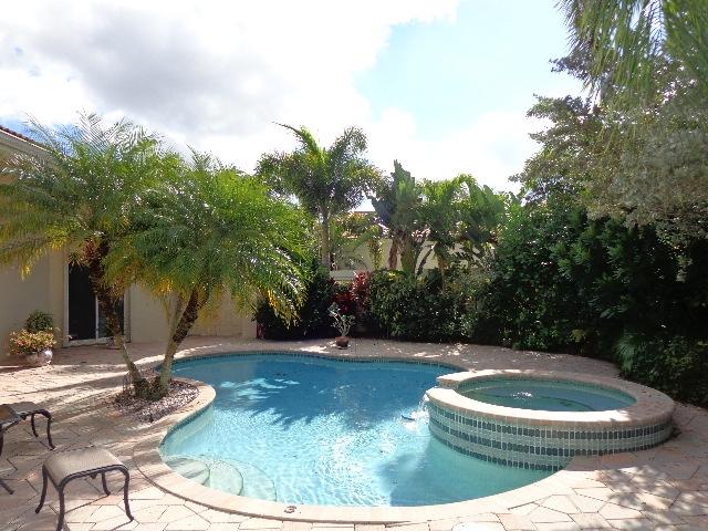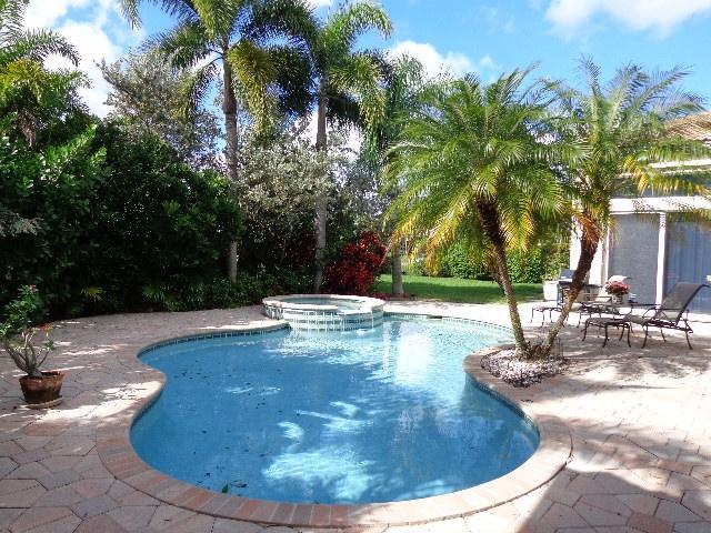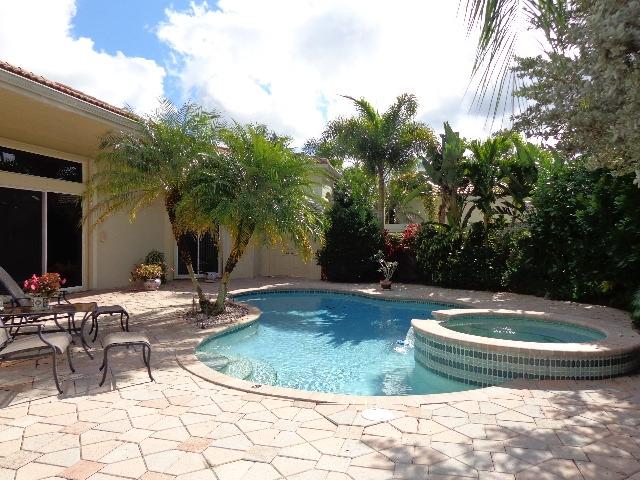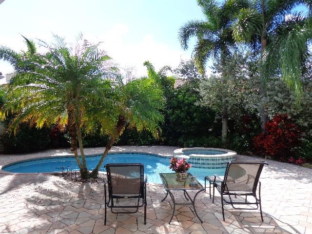 Gorgeous courtyard home! VERY PRIVATE! Enter into a tropical paradise w/ lush landscaping on a huge, almost 1/3 acre cul-de-sac lot. All landscaping maintained by the HOA! Beautiful oasis w/ large pool/spa and huge yard overlooking golf course views! 3 bedrooms & 3 full baths in this spacious open floorplan. NEW stainless steel appliances! Split plan with huge master bedroom w/ sitting area and views of both golf course and courtyard. 2 guest bedrooms (1 w/ private bath). Versatile floorplan w/ separate formal living and dining area OR create a large great room! Accordion hurricane shutters on most windows and doors. Huge lushly landscaped courtyard patio with pool & spa. Great golf course views...perfect! Not to be missed!