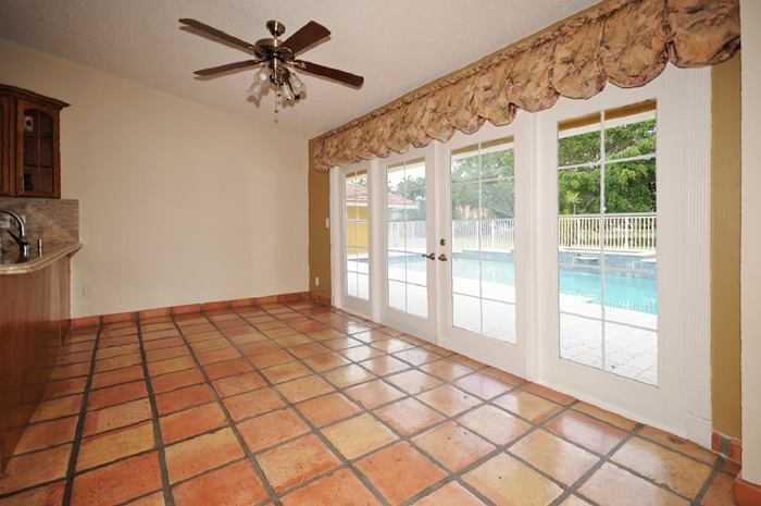 Great family home with 6 bedrooms, 3 full baths, 2-car garage located on an acre+ cul de sac location- open heated pool and spa; updated bathrooms and wood kitchen cabinets with granite counter tops and stainless steel appliance. Hurricane shutters on a ll windows and doors, French doors thru out, newer roof in 2002; all new ac units, wood burning stone fireplace in formal living room, split bedroom plan and much more.