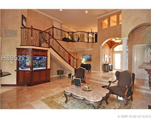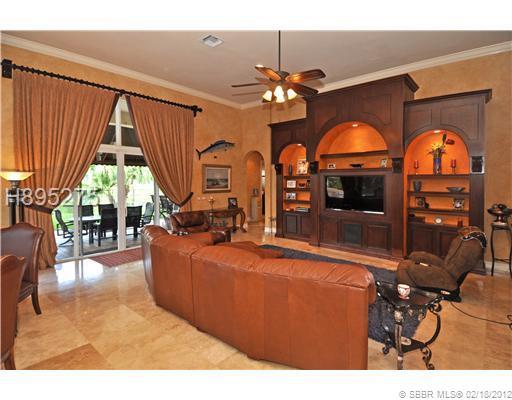 OWNER HAS BEEN TRANSFERRED JUST AS THEY FINISHED BRING THIS CUSTOM HOME BACKTO PERFECT CONDITION. UPGRADES INCLUDE: IMPACT GLASS, HOME THEATER ROOM WITH BRAND NEW FURNITURE. MARBLE FLOORING THROUGHOUT, GRANITE COUNTER UPGRADED CHERRY WOOD CABINETRY WITH S TAINLESS STEEL APPLIANCES. BUILT IN WALL UNIT WITH NEW TV, 275 GAL. SALT WATER FISHTANK, KOI POND. BUILT IN OFFICE WITH DESK. 22FT TRAY CEILINGS. CUSTOM WINDOW TREATMENTS. SUMMER KITCHEN LOOKS OUT OVER THE PRIVATE LAKE VIEW & LAGOON STYLE POOL.