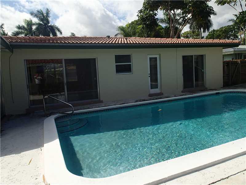 Wonderful 3 bedroom 2 bath single-family, concrete block home with large pool, spacious carport in highly sought after neighborhood, Coral Ridge Isles. Great Floranada school district one block from Pine Crest School. The utility efficient home has new im pact windows, clean barrel tile roof, attractive terrazzo floors, separate laundry room, lots of storage and enclosed Florida sun room. Newly sodded landscape with sprinkler timer. Ready to move in!