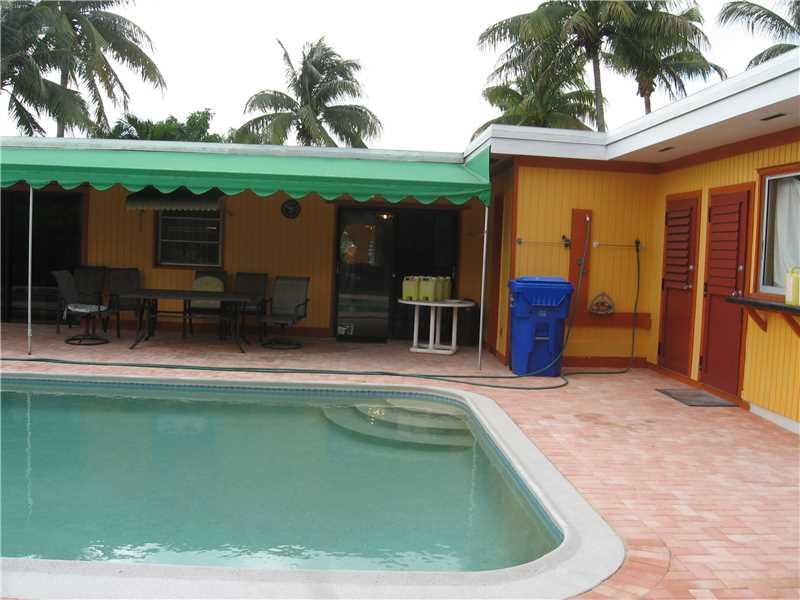 Not a short sale or REO. 3 bedrooms, 2 baths and a 1/2 cabana bathroom in the pool area. All windows will be replaced with impact windows EXCEPT bay window and storage room and pool bathroom. Upgraded kitchen with granite countertop, hardwood floor except kitchen and bathrooms, on demand hot water tank, one car garage, pavers on pool deck, new pool filter pump, fenced-in backyard with mango and avocado trees. Isle in the kitchen not included. Owner is an Agent.