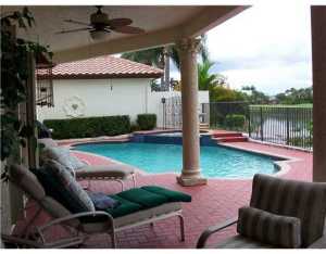 PRICE REDUCED ! MILLION $$$ view. Only view in Boca Pointe with unobstructed Golf & lake view. 4/4 + family room + den/library. Oversize 2 car garage. Formal dining area + eat in kitchen. All bedrooms up. Fabulous view from pool patio and from deck off master bedroom. Heated pool.Granite kitchen counters, newer appliances. 3 air conditioners; 2 recently replaced. All measurements approximate, not warranteed. BocaPointe is a Class-A full service Country Club but membership is not required. Membership is available for a minimum of 3 months and you pay only the dues.