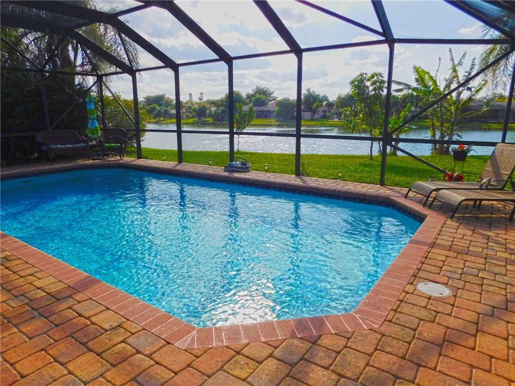 VIDEO TOUR: https://youtu.be/wjqgOFqDXlw This immaculate waterfront home features everything on your wish list. Enjoy the endless lake views throughout the bright & open layout w/ vaulted ceilings. Lounge on the gorgeous screen-enclosed patio w/ a refreshing swimming pool & expansive backyard. Even the updated kitchen w/ cherry cabinetry & SS appliances offers a great view of the water just beyond the large living room windows. Plus newer roof, shutters, A/Cs & much more. This gorgeous home will not last!