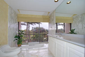Beautiful views of the Palm Beach Par 3 golf course and lake, ocean views from the 2nd floor and Intracoastal views from first and second floors. Spacious living room and dining room, eat in kitchen, elevator. Master Bedroom suite and dressing room with two walk-in closets and additional closets and built-in drawers. Updated master bath and spa tub. Immaculately maintained. 2 car covered parking, tennis court and pool. Furniture available for sale separately.