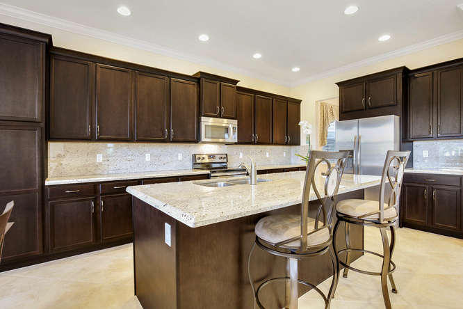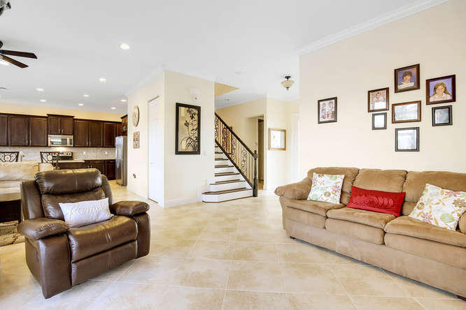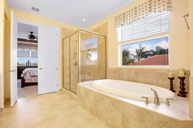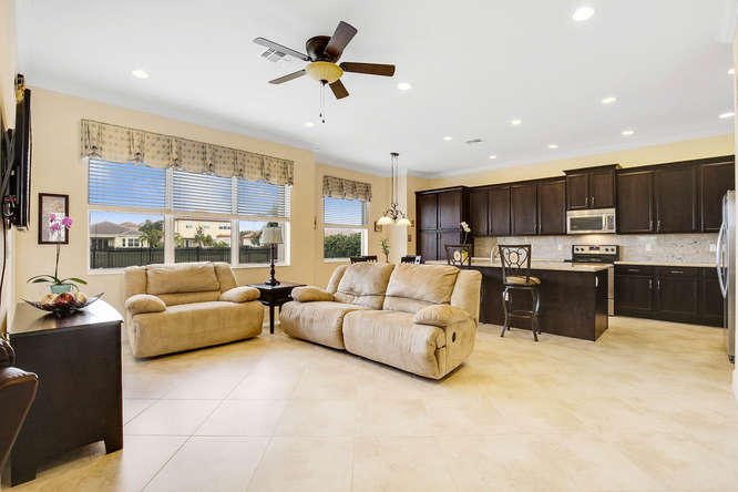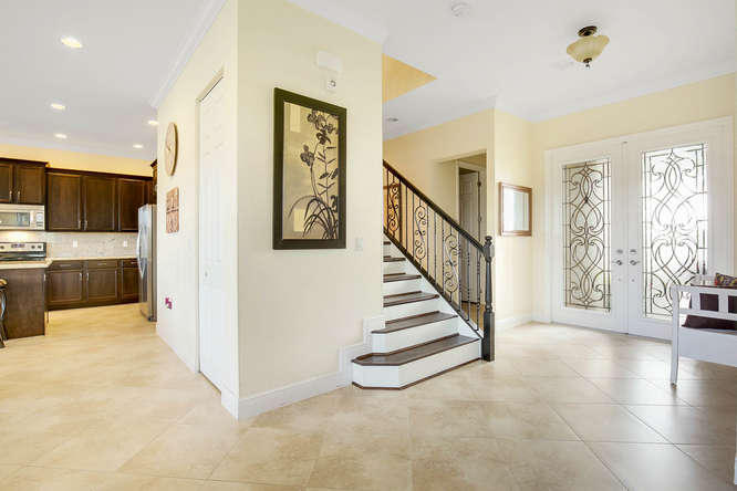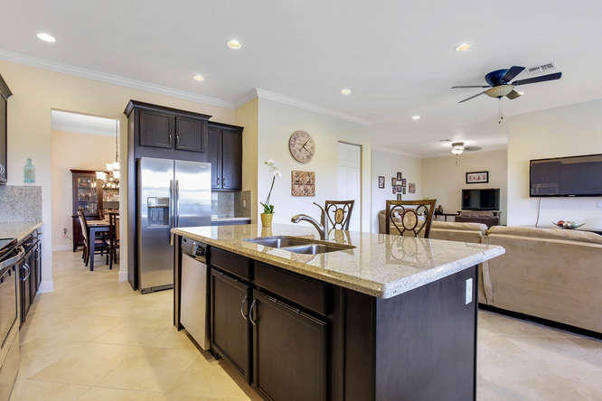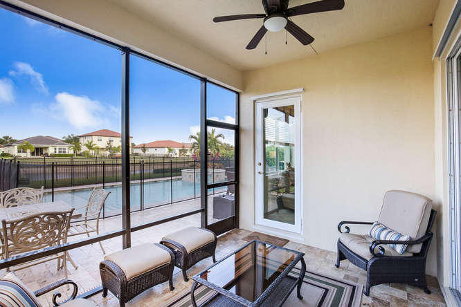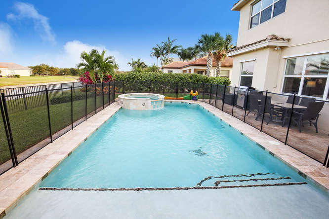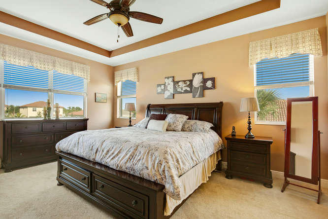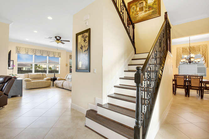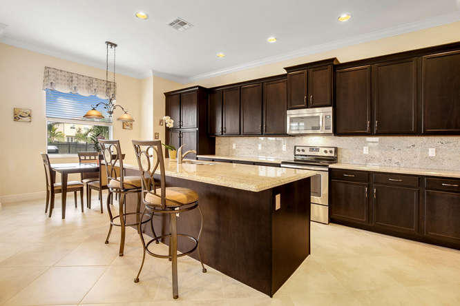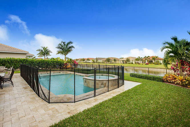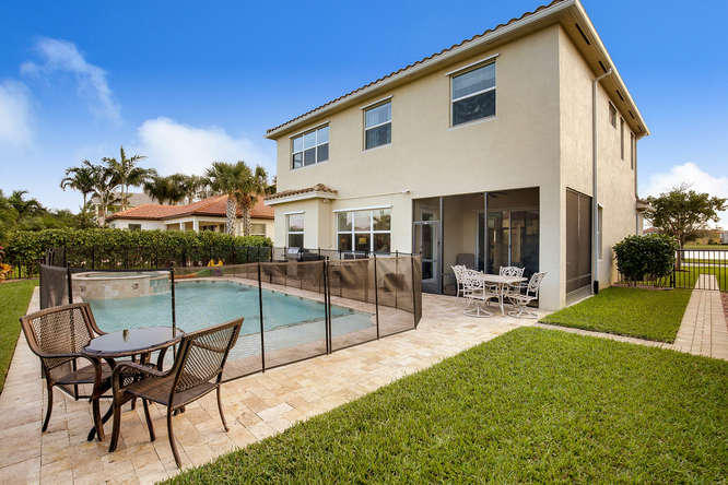 This energy efficient Capri model with a heated salt water pool will leave you looking no further! Built in 2012 the home offers both front and back lake views and plentiful upgrades including decorative glass French entrance doors,20x20 porcelain tile on ground floor, gourmet kitchen with granite countertops and full granite backsplash, stainless steel appliances, upgraded iron railing and hardwood flooring present on stairs and second level, crown molding throughout, custom curtains, California closets and more! The exterior offers a screened in, covered porch, expansive recently installed travertine patio with heated pool and jacuzzi, fenced yard and tropical landscaping. If you desire the perfect home in a resort style, gated community,come and visit Portosol today.