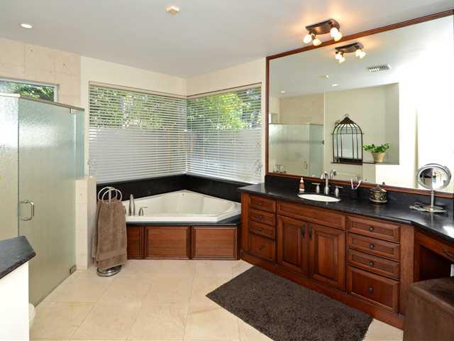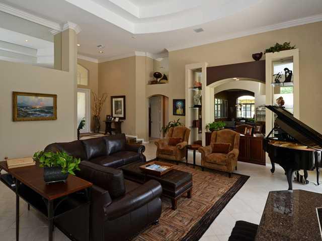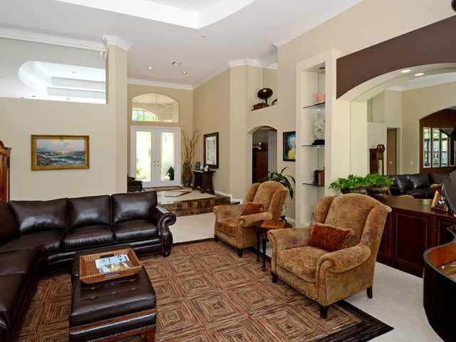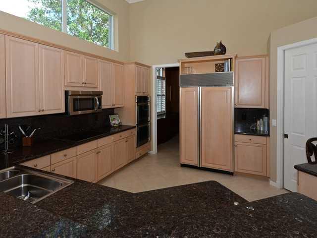 Double door glass etched entry doors*formal double step down foyer*crown molding*step down wet bar*laundry room w sink & cabinets*kitchen with 42" cabinets,granite,double wall oven,built-in microwave,subzero,desk area,walk-in pantry,salt chlorenator heat ed pool/spa recently redone as well as marble travertine decking*color changing halogen lighting in pool*accordion &paneled shutters as well as film protection*2 a/c's, air handlers replaced 3 years ago*wood in master bedroom, his & her master baths