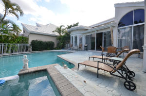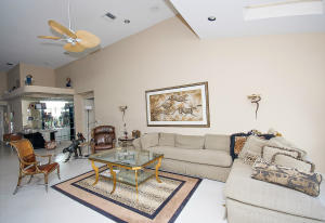 STUNNING GOLF AND LAKE VIEWS FROM THIS ONE STORY POOL HOME, WITH 2 LARGE BEDROOMS, PLUS A DEN.FEATURES INCLUDE A REMODELED KITCHEN WITH GRANITE COUNTER TOPS, A WET BAR, NEW WATER HEATER, SKY LIGHTS AND HIGH CEILINGS THROUGHOUT. WHITE TILES AND PLANTATION SHUTTERS SHOW OFF THE WONDERFUL NATURAL LIGHTING. 2 NEWER A/C UNITS, A HEATED POOL PLUS A TILED GARAGE. COME AND GET THIS BEAUTY - PRICED TO SELL!!!