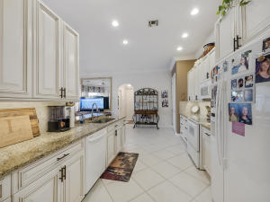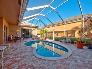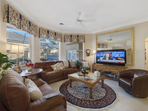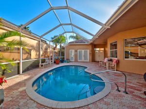 Awesome single family courtyard home with 285 square foot guest house / in-law suite! Light bright floorplan. Upgraded kitchen features raised panel cabinetry, granite countertops, bar stool seating. Spacious master suite with sliders to the screened in heated pool, California walk in closet. Master bath with dual sinks, separate shower, roman tub. Guest house has French doors to pool, full bath, private entrance. Very private for in-law suite or guests. Loads of upgrades including diagonal tile, hi-hat lighting, crown molding. Paver driveway and pool deck. Membership at Ironhorse Country Club is NOT Mandatory to live in Ironhorse. Several membership options avail starting with Social at just $500 initiation and $1300 per year! One of most Affordable Golf Communities in Palm Beach County!