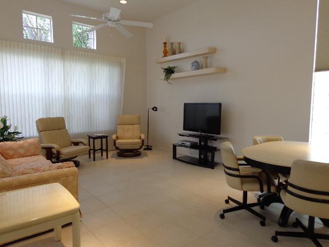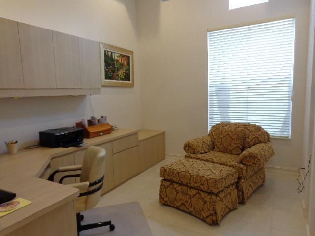 Popular Tivoli floorplan with 3 bdrms + den, 3 baths on beautiful golf course lot! Enter through custom etched double doors. Upgraded tile floors throughout main areas including den. High volume ceilings, coffered ceilings, lots of recessed lighting, central vacuum, paddle fans, silhouette window treatments. Accordian hurricane shutters! Large living room/dining room for entertaining. Kitchen features Sub-Zero refrig w/panels, under counter lighting, microwave, wall oven, lazy susan, corner glass door cabinet, undermount sink, smooth top electric cooktop. Spacious adjacent family room. Master bedroom with wood floor, 2 walk-in closets with built-ins. Spacious master bath. Den features built-in shelving. Guest bedroom suites are totally separate. Beaut... (see supplement for full remarks)