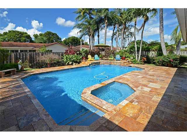 UPGRADES GALORE IN THIS FABULOUS 4/2 IN JACARANDA LAKES! RELAX OR ENTERTAIN IN YOUR CUSTOM POOL & SPA THAT IS SURROUNDED BY EXQUISITE MARBLE PAVERS&LUSH LANDSCAPING! BEAUTIFUL WOOD FLOORS IN 3 BEDROOMS & THE LIVING ROOM! GOURMET KITCHEN W/ EXPANSIVE GRANI TE BREAKFAST BAR & ELEGANT WOOD CABINETS! GRANDE MASTER SUITE W/LARGE WALK-IN CLOSET& TASTEFULLY RENOVATED MASTER BATHE! 2006 STONE --COATED STEEL ROOF W/A 50 YEAR WARRANTY! OTHER FEATURES TO INCLUDE, NEWER WINDOWS, WASHER DRYER,&SOLID WOOD DOORS!