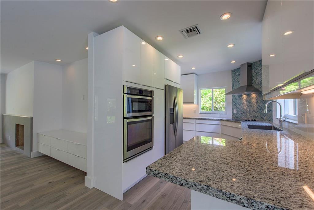 Completely re-built and updated! Newly imagined with refreshing contemporary finishes, porcelain wood tile floors, white finished cabinetry, Granite and Quartz tops, recessed lighting and premium fixtures throughout. Both dining and master open out to a spacious covered terrace that overlooks a new pool and private, well landscaped yard. The open Great room has wood burning fireplace and media wall with custom built-ins. New tile roof, whole house impact windows circular drive and covered parking