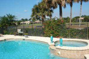 Spacious and gracious, fabulous floor plan, wonderful community. This is a large two-bedroom plus den Encino model with an open kitchen-family room floor plan and a master bedroom with a sitting area. The second bedroom also has an expanded built-in desk or sewing area plus a full bath. The kitchen has beautiful granite counters and stainless steel appliances. It flows beautifully into a large family room that overlooks the pool, deck and golf course beyond. The house has accordion shutters throughout. There is an enormous three and a half car garage. Ironhorse Country Club is a small community of about 325 homes, many located on the golf course. Country club membership is optional, yet affordable.