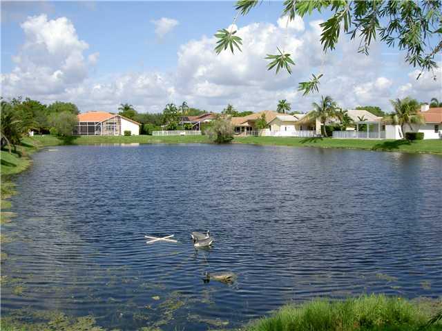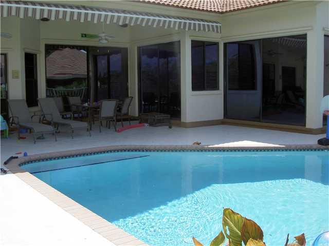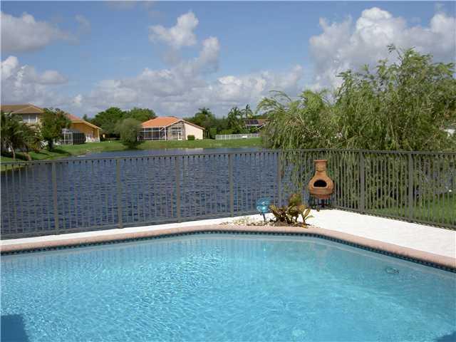 The " TOTAL PACKAGE ", 4 bedroom 3 full baths with triple split very open floor plan. Located in " the Enclave " gated section of prestigeous Jacaranda Lakes,home features a beautiful free form pool over looking the wide lake. Remote auto awning. The roof replaced with the finest tile approx.8 years ago,the dual high eff. a/c is approx. 2-3 years old. Water heaters replaced recently. All kitchen appliances about 4-5 years old, separate huge laundry room w/fridge Storm shutters enhance the insurability.