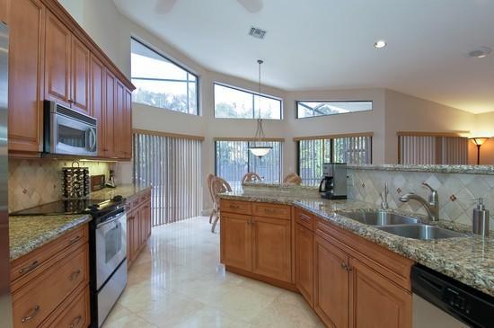 Total remodel, quality updates & upgrades thru-out, including newer roof with warranty. Gorgeous saturnia marble floors in living areas. Hi cathedral and vautled ceilings with clerestory windows. Custom fixtures and fans stay. 42" wood cabinets, grani te, tumbled marble and stainless steel in huge custom kitchen. Baths are all redone with fabulous tile, cabinets, fixtures and seamless shower doors. Large screened patio & private open pool. Quiet cul de sac street.
