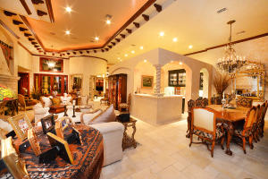 JUST REDUCED. MAJOR REDUCTION. PRICED TO SELL!! DON'T MISS OUT ON THIS MAGNIFICENT HOME.This is one of the largest and most luxurious homes in Broken Sound. THIS HOME COMES COMPLETELY FURNISHED. Famed architect John Leslie Neufeld designed this home utilizing only the finest materials including Honduran Mahogany doors and windows, Jerusalem Stone floors, French Limestone bathrooms, two magnificent fireplaces, travertine marble courtyard, Chicago brick golf view patio, graceful murals, mosaics and custom ironwork. Hidden at the end of a private 200 ft. driveway, this home features a state of the art kitchen, luxurious outside family room with fireplace and barbecue, '''his'' and ''hers'' offices, a private two bedroom guest house with kitchenette and marble