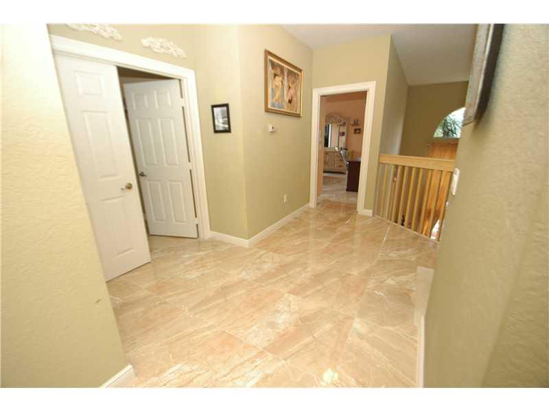 GORGEOUS 2-STORY HOME WITH TOP-OF-THE-LINE ACCORDION SHUTTERS. LARGE POOL WITH WATERFALL, SCREENED ENCLOSURE AROUND POOL AND PATIO. GOURMET KITCHEN WITH CENTER ISLAND, STAINLESS STEEL APPLIANCES, GRANITE COUNTERTOPS. UPPER LEVEL HAS ALL NEW PORCELAIN FLOO RS, STAIRS HAVE MARBLE.