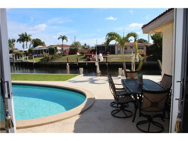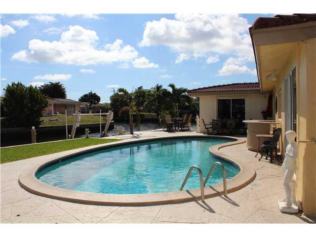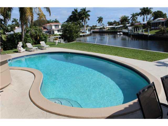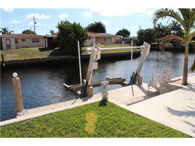 Stunning Waterfront home, over 150 ft on the Water w/ panoramic views.Very desireable open floor plan,updated kitchen,stainless steel appliances, gas range. All 3 rooms are master size w/ 2 huge walk in closets.Comes w/ a 8000lb storm surge boat lift, and a Hydraulic Sunlift for up to 4500 lbs,electric & water supply on dock.10 min boat ride to intercostal:access to Ft Laud, Lake Santa Barbara, Lighthouse Point, or Lake Boca. Home is on a cul-de sac w/ chicago brick driveway & court yard w/ built-in shed.