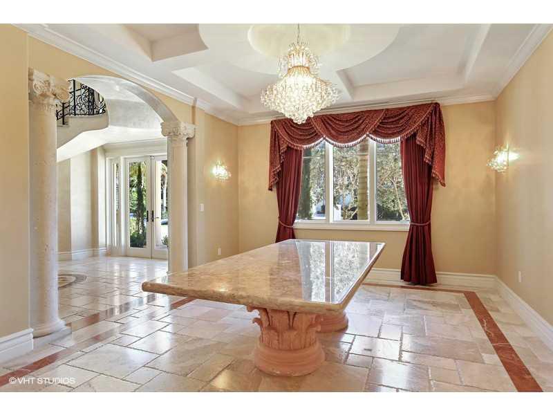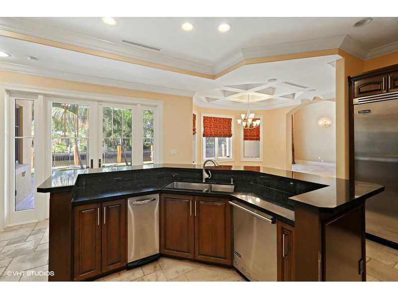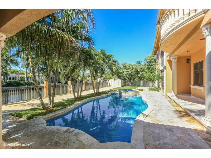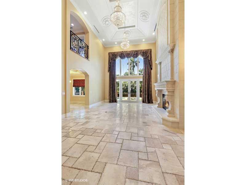 Lovely Mediterranean home 100' w/f, will fit 80' yacht. Elegant foyer, flowing staircase & marble medallion floor design. Venetian plaster on walls & ceilings, stone fireplace, polished marble floors, gourmet gas cooking kitchen, custom iron work, solid wood doors & hydraulic elevator. Bedroom with lighted tray ceilings, indirect lighting, home theater w/acoustic ceiling. Brazilian cherry floor in some rooms, designer fixtures throughout, double shower in master. Great location! $50K upgrade allowance!