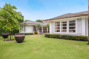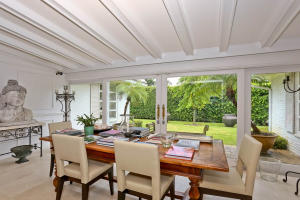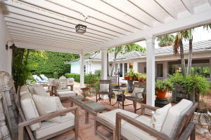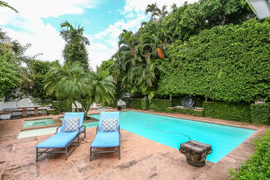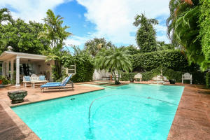 Estate Section - very cool Bermuda on one level, needs lots of TLC! Deeded beach. 100' x 136' lot with great pool area and surrounding green spaces, 2-car garage, laundry room and guest suite in separate building. Great loggias, light filled bedrooms and lots of potential. Gratis Mar-a-Lago Club initiation.