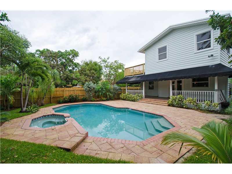 Newly renovated, updated and rebuilt! Reminiscent of Key West just blocks to Las Olas. New impact windows and doors, a contemporary, open kitchen with breakfast bar, vaulted beamed ceilings, hardwood floors and a wood burning fireplace. Private 2nd floor master has a spacious master bath with roman tub, beamed, vaulted ceilings and an inviting porch. Two ground floor bedrooms share an updated bath and a powder room is just off the room-sized foyer. Huge covered back porch overlooks private yard & pool.
