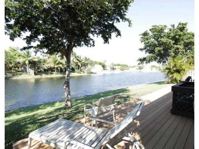 Privacy of SFD w/o the work.Serene lake view from back deck of private,fenced,charming zero lot line home.Roof & air approx 7 yrs,painted inside & out,wood composite deck in back & side yard,SS appliances,ceramic tile throughout;one bedroom laminate,upgra ded window coverings & lighting,5 ceiling fans,3 storage units.Low HOA fee pays community pool,lawn cutting front,fence painting,use of the Shenandoah Community Park.Close to major highways,A+ schools,Sawgrass Mills Mall,Publix..furniture negotiable.