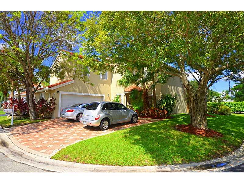 Captivating 4bed/2.5bath/2Garage corner home!Light,bright & open floor plan,updated kitchen w/wood cabinets,newer stainless appliances,tiled throughout living area downstairs,marble staircase leading upstairs to 4 bedrooms w/laminate flooring.All 3 baths have granite& are fully renovated.Newer a/c & hot water heater.Accordion shutters&new hurricane garage door. Beautiful pavers on driveway& patio in private,fenced in yard. Large electronic awning. Amazing gated community w/pool and tot lot. Great schools!
