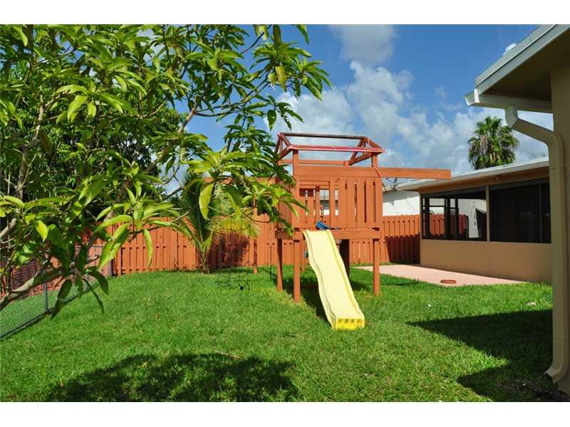 Well Maintained & Spacious 4/2 Sunrise Golf Village Home! Large corner lot & big 2 car garage. Nicely landscaped with stamped cement circular driveway. Fenced backyard & custom play area. Formal living & dining rooms. New granite kitchen with large pantry , gas range, new refrigerator & new dishwasher. Master bedroom with new carpet, make-up vanity, large walk-in closet & master bath with shower. Family room leads to enclosed patio & waterfront view. Roll down hurricane shutters on patio. A MUST SEE!!!