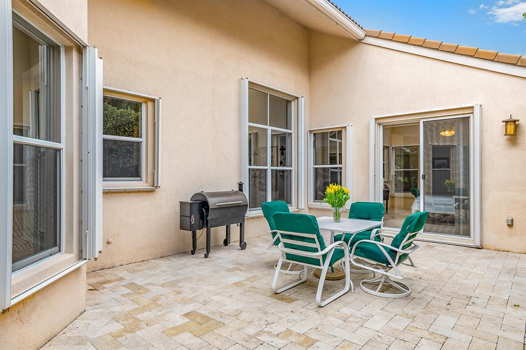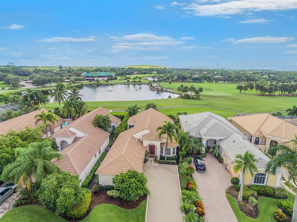An elegant single family house situated on the 1st hole of the award winning Arthur Hills designed golf course. This bright, open home features cathedral ceilings, a split plan that has plenty of living space and options to even add a 4th bedroom. The house has a formal dining room, a den/ office, a family and living room. The spacious main bedroom has sliders to the patio with lush landscaping and spectacular views of the golf course, a large walk in closet, dual sinks, tub and walk in shower. The updated kitchen has stainless steel appliances, a granite island and breakfast nook, A move in ready house, great family and entertaining setup. There is an additional interior patio off the kitchen and guest bedroom, perfectly suited to enjoy the outdoor south Florida lifestyle. Experience the