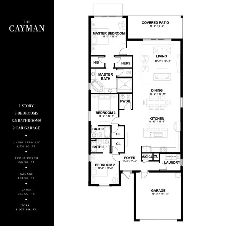 The CAYMAN is a 1-story, 3 bedroom, 3.5 bathrooms, 2,331 square feet of living area and 3,077 total square footage. The CAYMAN comes with a 2-car garage. GE washer & dryer included. Homeowner receive a complimentary 3-year resortaccess pass to 18-hole Signature Jack Nicklaus Golf Course, clubhouse featuring indoor/outdoor dining, Pro Shop, 6 Har-Tru tennis courts and access to futurehotel resort amenities. BRAND NEW CONSTRUCTION ready third quarter of 2021