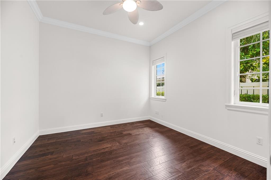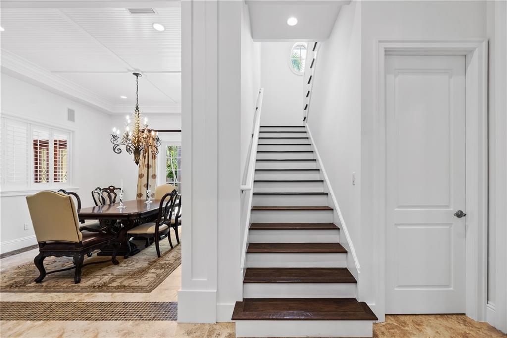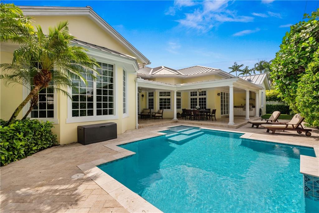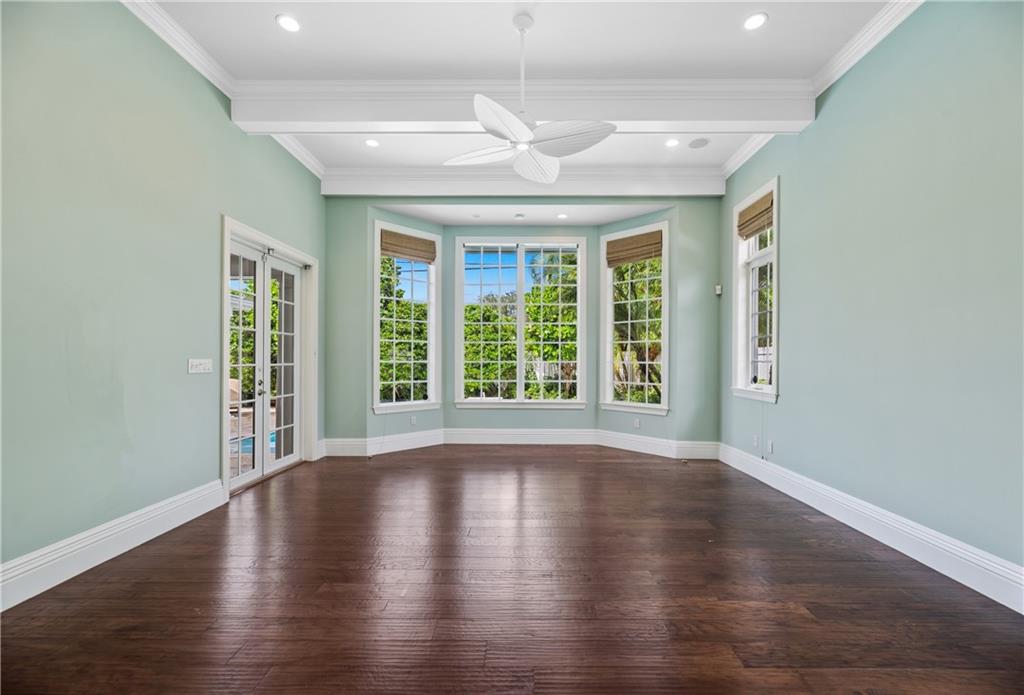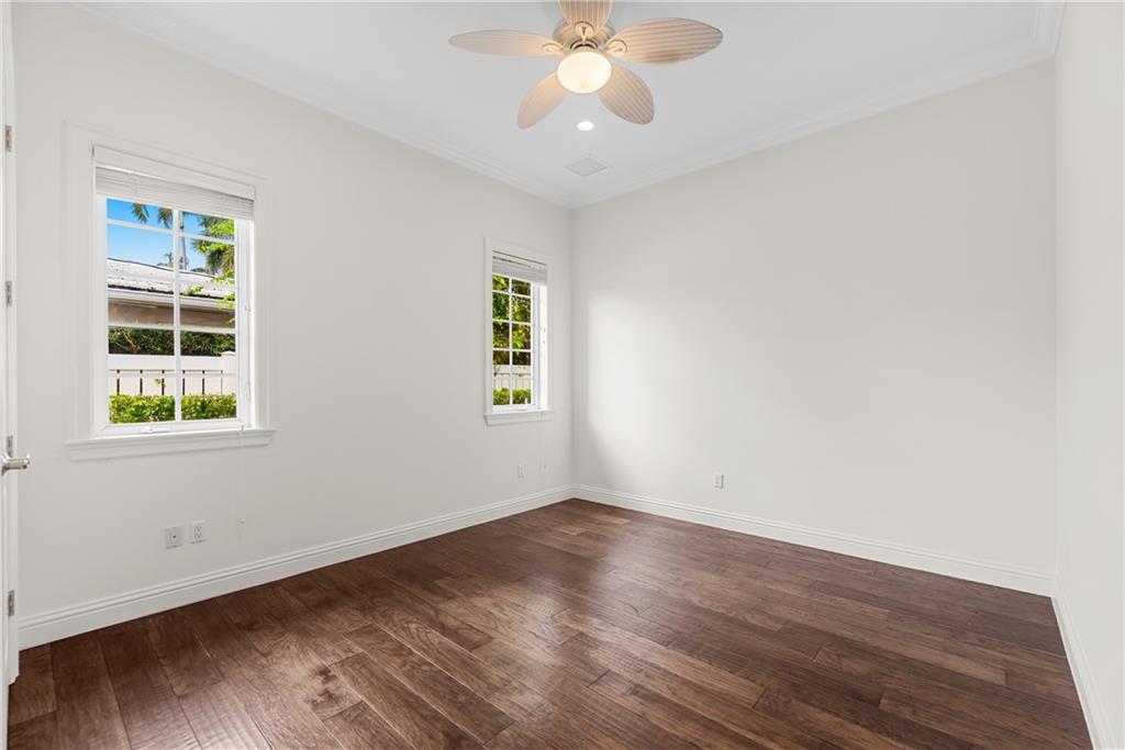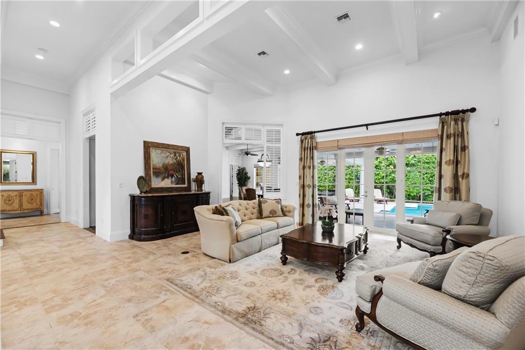 A Key West style residence, located in Coral Ridge, has over 4,100 SqFt of LA with 4 bedrooms, 3.5 bathrooms, 3 car garage, office, 2nd floor bonus room, impact windows and generator. Enter through a gated courtyard and welcome guests through the front doors into the elegant and spacious formal foyer and living room overlooking the patio and heated pool. Informally entertain guests in your family room and kitchen, complete with breakfast nook, wet bar, wine refrigerator and eat-in kitchen island. The kitchen is well appointed with Thermadore appliances, custom wood cabinets and stone counter tops. This residence boasts an oversized master bedroom with his and hers walk-in closets. The gorgeous master bathroom has two vanities, water closet, spacious shower and separate freestanding tub.