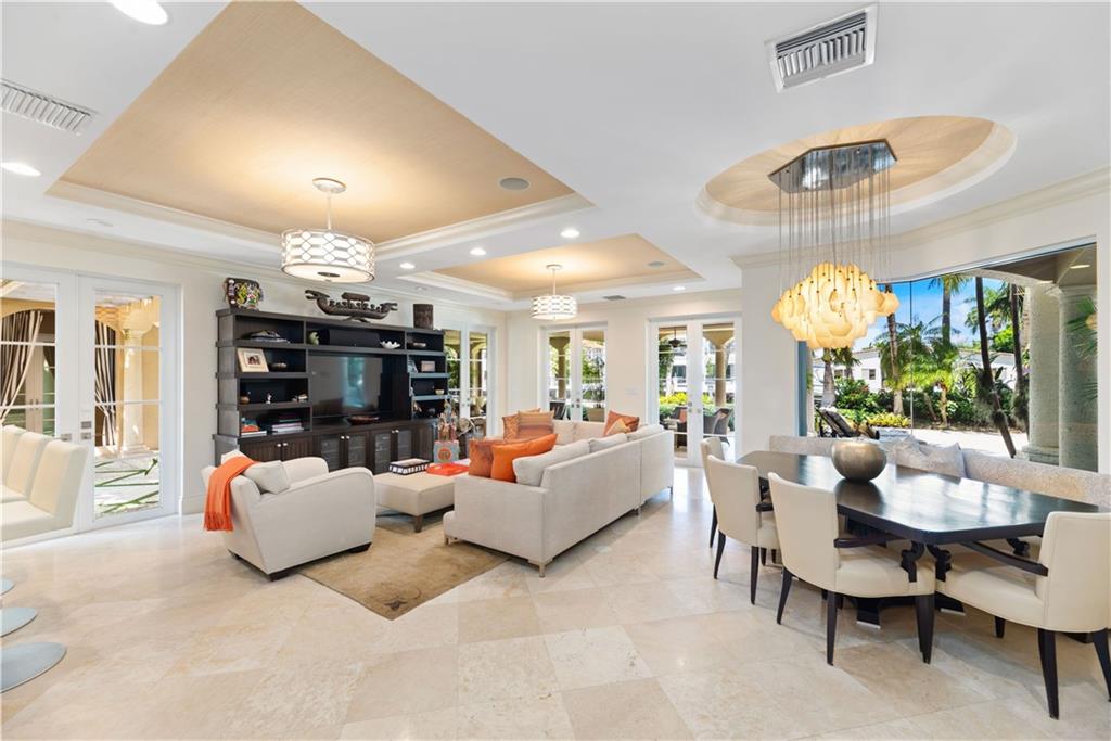 Unique mega-estate sits on approx 2/3 of an acre in 24-hour patrolled Seven Isles. 160 ft of deepwater might fit 100 ft yacht. The primary house features a two-story great room with a fireplace & walls of glass overlooking the pool. Impact glass, elevator, full house generator. Library equipped with a full bath. Upstairs master suite with sitting area, gym, and balcony. Two separate guest’s quarters presently used as HIS and HERS office. HIS Office features a full bath and closet. Her office includes sitting room, sink, two burners stove, full bath, & closet. Outdoor loggia includes four sitting areas plus a dining area next to a fully equipped outdoor kitchen and gas fireplace. Temperature-controlled wine cellar with 600 bottle capacity. Pool & Jacuzzi with waterfall and fire pits.