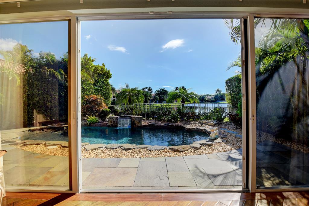 Welcome to Woodfield Country Club. This rare 4 bedroom 3 bath home sits on an oversized lot with tremendous southern exposure lake views and lush sitting gardens. This open floor plan features stainless steel appliances including Miele double ovens, maple cabinets and granite counter tops. The home also has natural gas for cooking and hurricane shutters, natural gas generator, newly installed automated interior shades and automated screens for the patio area. The pool is heated with an auto fill. This is a must see home to experience what could be yours.