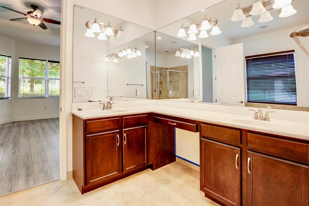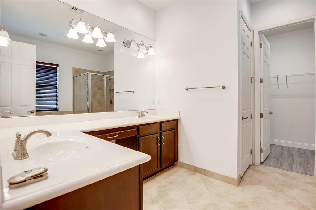 **2MASTER SUITES & THE BEST LOT IN THE COMMUNITY** This 3 bed/3bath single story model boasts: 2 master suites with walk-in closets; new flooring & fresh paint. The lush landscaping invites you into this expansive floor plan with dark wood & granite throughout. The kitchen features extended counters, stainless steel appliances and a huge pantry. Property is located in a private cul de sac, on a premium lot adorned with lush greens, no rear neighbors & plenty of space to add a private pool. PortoSol is a LOW HOA, highly desirable, gated community with: Resort style pool, sauna, game room, activity room, gym, playground, basketball court, tennis court and volleyball court.