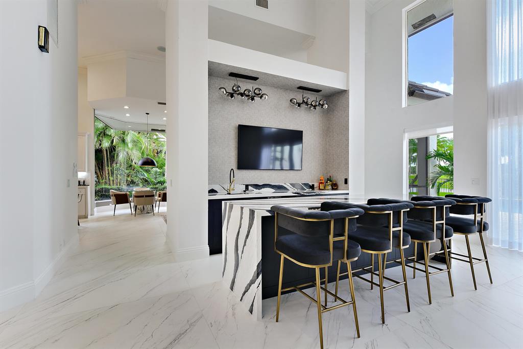 ESTATE SALE PRICED FOR QUICK SALE.Magnificent 2-story home renovated from top to bottom with the finest finishes including oversized 40 x 40 flooring, designer fixtures and luxurious handmade tile throughout. The grand entrance opens to the spectacular main living area with formal living room and dining room designed for the ultimate in family entertainment. The gourmet chef's kitchen opens to the breakfast area and family room which overlooks the lushly landscaped resort style pool, screened loggia, and beautiful lake and golf course views. The main floor master suite features luxurious master bath with steam room, Toto toilet, and 2 large walk-in closets.