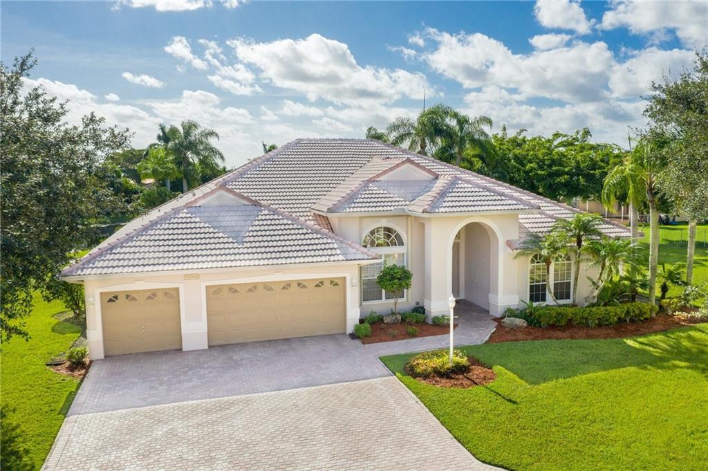 Large 1/2 acre wide waterfront homesite on a private Cul De Sac street. 5 Bedroom 3 1/2 split layout w screened pool, 3 car garage and estate style layout. Dramatic volume ceilings, large formal dining, living & family rooms. Huge eat-in kitchen café nook overlooks pool, patio,wide rear grounds and waterfront. Very spacious Master Suite and Bath with water & pool vistas. Tiled in the main living areas, new flooring in the bedrooms, updated baths w newer granite, cabinets and tile flooring. Recent exterior paint and landscape refresh. Great gated community with low HOA, tot lot and tennis court. Walk or bike to A rated elementary. Top rated middle and high school as well. Gated community, convenient to everywhere but in a secluded setting. Well maintained by original owners.