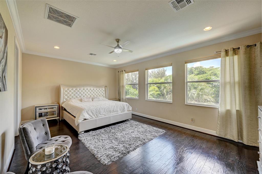 What are you waiting for? Live the Heron Bay resort lifestyle. Bring the entire family! This home is filled with upgrades, hardwood floors throughout and beautiful stone bathrooms. Closet Organizers in every bedroom, 4 enormous walk-in closets. Every bedroom has direct access to its own bath. Upgraded chef's kitchen with a giant island for sharing those family dinners. The backyard is a private oasis with a beautiful saltwater pool and gas heater. Fully Hurricane Proofed with Impact windows and doors throughout. Heron Bay has all the amenities (two community pools, full array of tennis courts, multiple gyms, basketball courts, racquetball, two clubhouses, three guarded entrances and one of the lowest full amenity HOAs in Parkland).