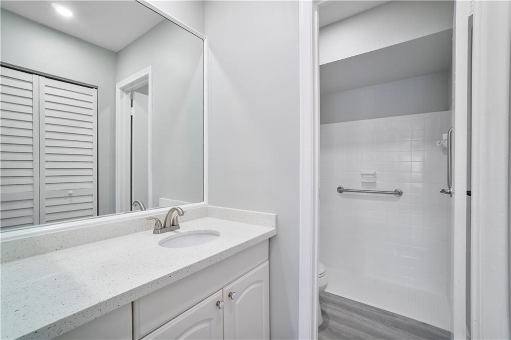 2/2 end unit villa with gorgeous lake views. Completely remodeled kitchen features quartz countertops, new cabinetry and stainless steel appliances. Lots of recessed lighting in kitchen and family room. New paint throughout. Both bedrooms have new flooring and walk-in closets. Master bathroom has quartz counter and tiled shower. Enjoy the large screened in porch over looking the lake. Roof 2006. AC 2010 Low HOA includes pool and clubhouse.