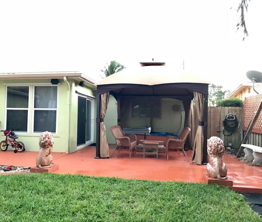 If you’re looking for a turn-key house, this is it! This beautiful well maintained home is located in a quite community in Sunrise FL, near lots of shopping, restaurants, and easy access to major highways and interstates. Brand new roof (2020) and fence. Relax and entertain under a gazebo with hot tub (included) in the backyard and a water view. The kitchen has been recently remodeled with all major appliances (stainless steel) replaced in last 4 years. The guest bathroom has been recently remodeled. Two master bedrooms with en suites, the larger master bedroom has a wet bar, ceiling speakers and recess lights. Property comes has alarm system with out door cameras and wiring.