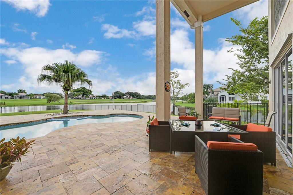 Custom Home with Million Dollar Views! The large completely fenced point water lot provides wonderful panoramic views of rolling greens of Eagle Trace golf course. Lushly Landscaped, Freeform Pool and Spa. Covered Sitting Area & Spacious New Tiled Patio. Enjoy watching the birds & golfers, who are way across the waterway. Porcelain Tiles on 1st FL & Brazilian Cherry Wood throughout 2nd FL. Formal Dining Area flows into Great Room/Family Room under High Ceilings. Large Working Kitchen w/snack bar. Spacious Master w/ oversized walk-in closet. Inviting Master Bath! Walk in closets in all Bedrooms. Loft, Laundry Rm, Solar Water Heater. 2 Car Garage w/new epoxy floor. Community Pool, Tennis Courts & Clubhouse are just across the street, just for The Hamptons & The Glen residents.