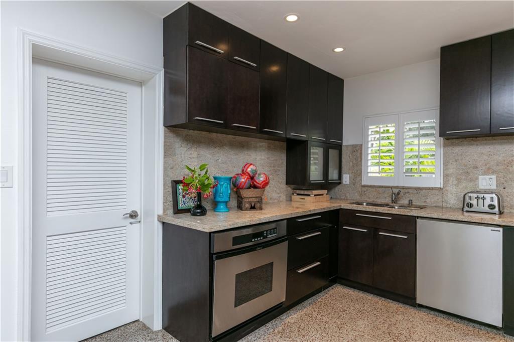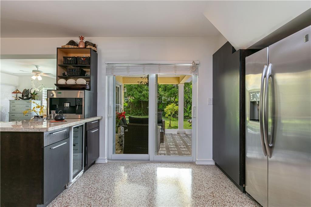 Amazing renovated home located in River Oaks in East Fort Lauderdale. A focal point of this property is the master chef kitchen with granite counter tops, wine fridge, Miele dishwasher, cappuccino machine, Dacor oven and a five-burner gas stove top. Beautifully refurbished terrazzo floors, high impact windows, doors and a new roof adds to the value of this 3 bedroom / 3 bath property. Two of the bedrooms offer additional revenue potential by having their own locked entrance and ensuite bathrooms. The Master bedroom offers an oversized closet, Bermuda shutters used throughout as window treatments and decorative tile in the Master bathroom. Mature tropical plants adorn the fenced yard, built-in sprinkler system, covered lanai patio and room for a custom pool. Central Location to I 95.