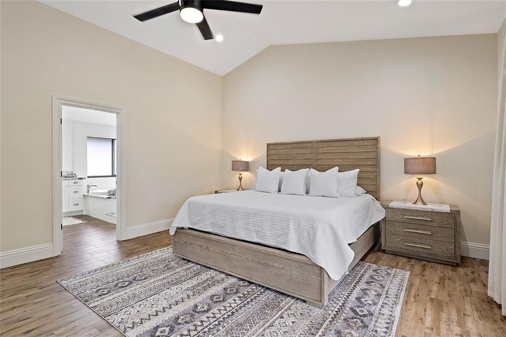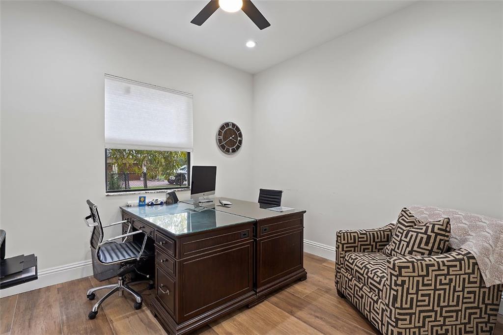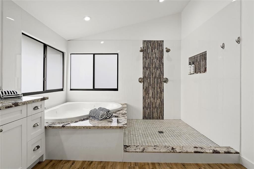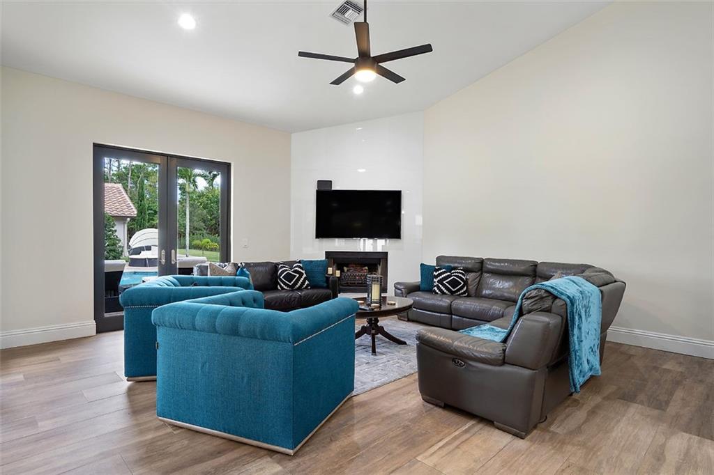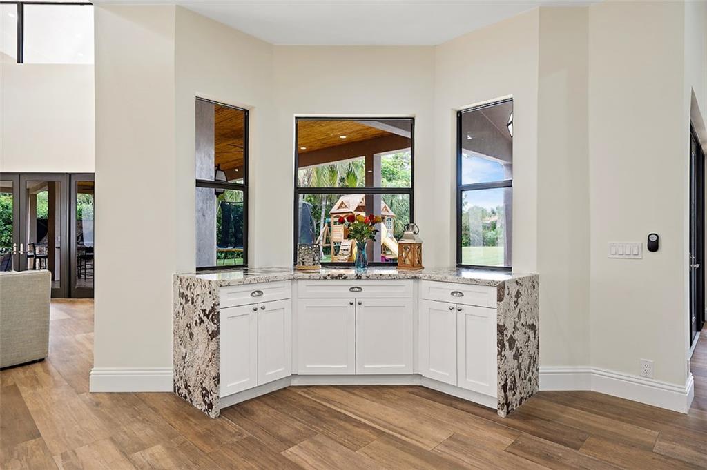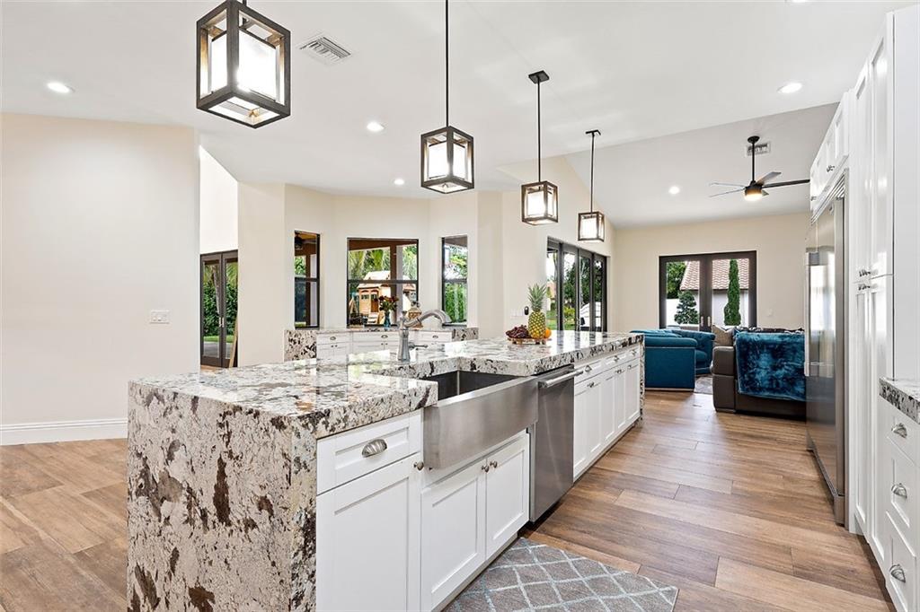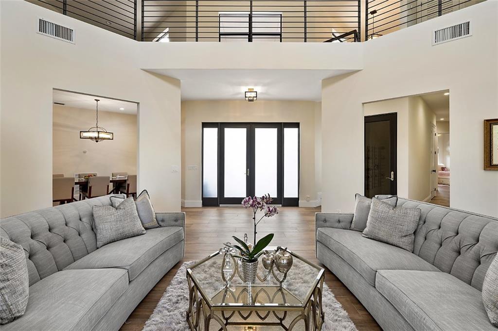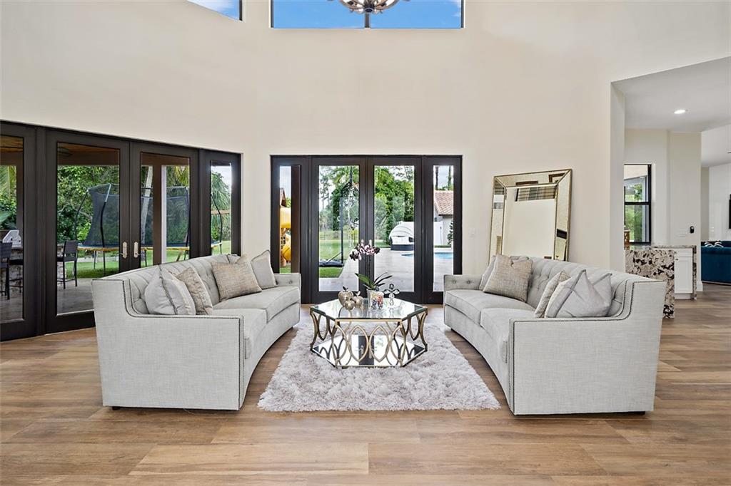 This magnificent home boasts an open and elegant floor plan. Upon entry you will appreciate the Italian porcelain floors and sophisticated design allowing views of the pool and garden. The home features a formal living and formal dining room. The expansive gourmet kitchen is a chef's dream with dual ovens, sub zero refrigerator and enormous island with seating for 6. Wine lover's closet. Oversized family room complete with fireplace. Downstairs features 4 bedrooms. Upstairs is the master and luxurious spa like master bath with walk in shower. Master features French doors that flow on to oversized balcony overlooking your outdoor paradise. Two other bedrooms and loft are are upstairs. The covered patio and summer kitchen are perfect for entertaining and flow to the tropical pool